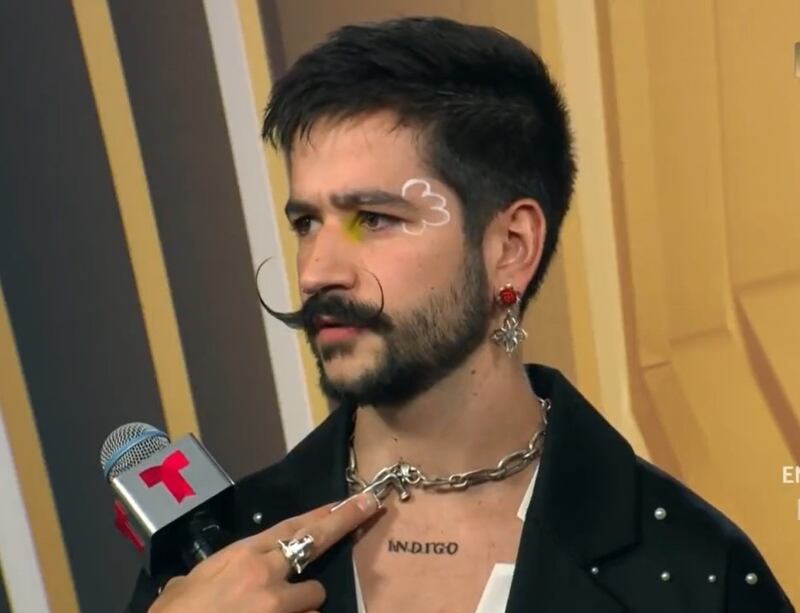 Fue en ese momento que el conductor mira el pecho de Camilo y le dice: "Por último primicia, se hizo el tatuaje de Índigo, mira qué bonito se lo acaba de hacer", a lo que el colombiano expresó: "Vieron que está como recién hecho", al momento de mostrar el nombre de su bebé.