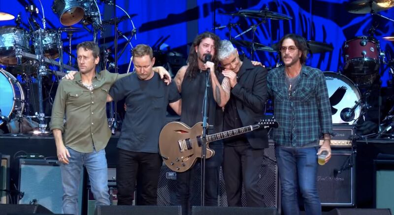 Así que esta noche nos reunimos con nuestra familia y sus amigos más cercanos, sus héroes musicales y más grandes inspiraciones para brindarles una noche gigante para una persona gigante", expresó Dave.