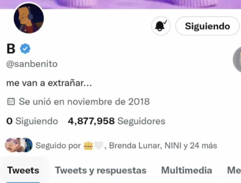Los seguidores de Benito se percataron de que su cuenta aparece como privada y ya no se pueden ver sus publicaciones, adicionalmente cambió la biografía de su cuenta de twitter y escribió: “Me van a extrañar”.