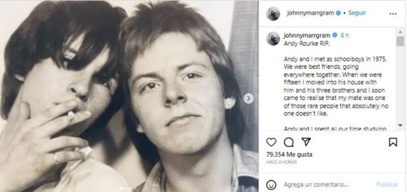Además de informar sobre la lamentable noticia, en el comunicado, Johnny pidió privacidad para sus familiares en estos momentos tan tristes. Marr compartió con sus seguidores una imagen en blanco y negro de su colega, tocando el bajo.