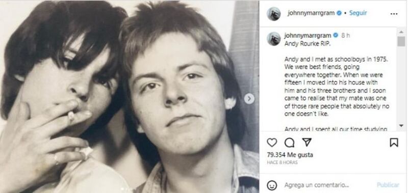 Además de informar sobre la lamentable noticia, en el comunicado, Johnny pidió privacidad para sus familiares en estos momentos tan tristes. Marr compartió con sus seguidores una imagen en blanco y negro de su colega, tocando el bajo.