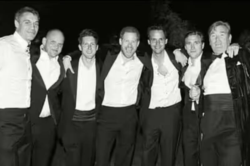 En la serie documental de Netflix de los Sussex, se mostró una fotografía en blanco y negro de Harry con seis de sus amigos más cercanos en la noche de su boda con Meghan en 2018.