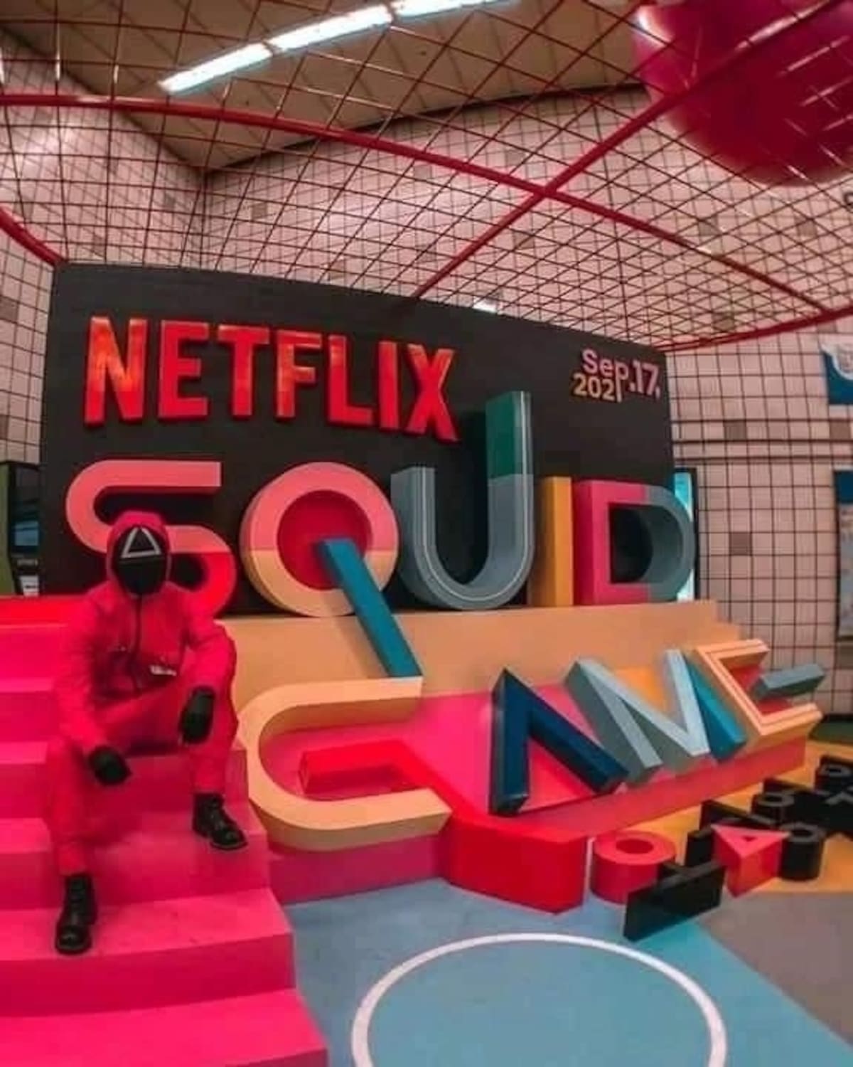 Netflix Francia anunció la apertura de una tienda temporal con temática de El Juego del Calamar en Paris para promocionar la serie, incluso contrataron guardias disfrazados. Las filas eran largas y la espera aún más, a algunas personas la lluvia los alcanzó y quedaron empapados.