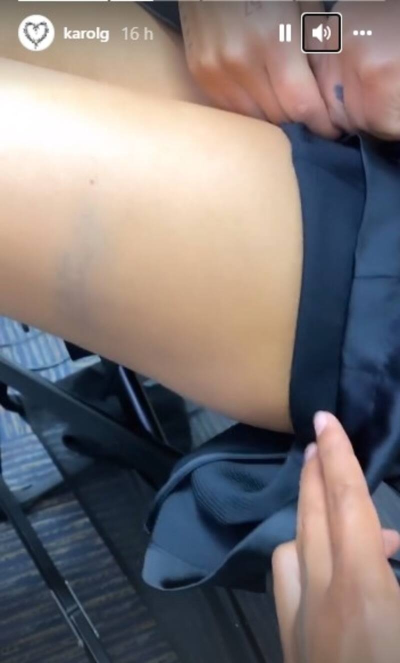 Aunque en el camerino Karol G y parte de su equipo se lo tomaron con humor, las pruebas de que su estrepitosa caída no había sido solo un tropezón, sino que un accidente que pudo tener graves consecuencias, quedaron expuestas.