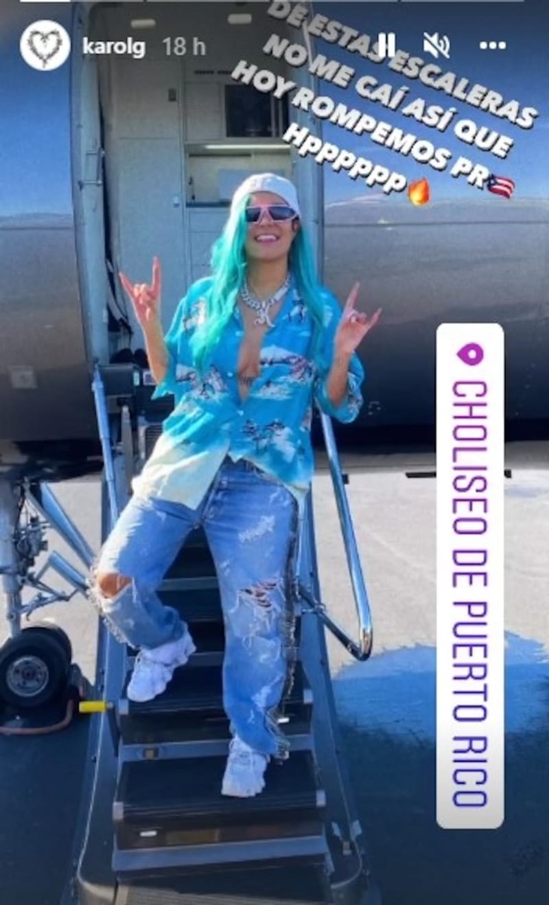 Igualmente, la cantante subió en su storie una imagen bajándose por las escalinatas de un avión y bromeando con que de ellas sí que no se caería, como para comprobar que su estado de ánimo era muy positivo.