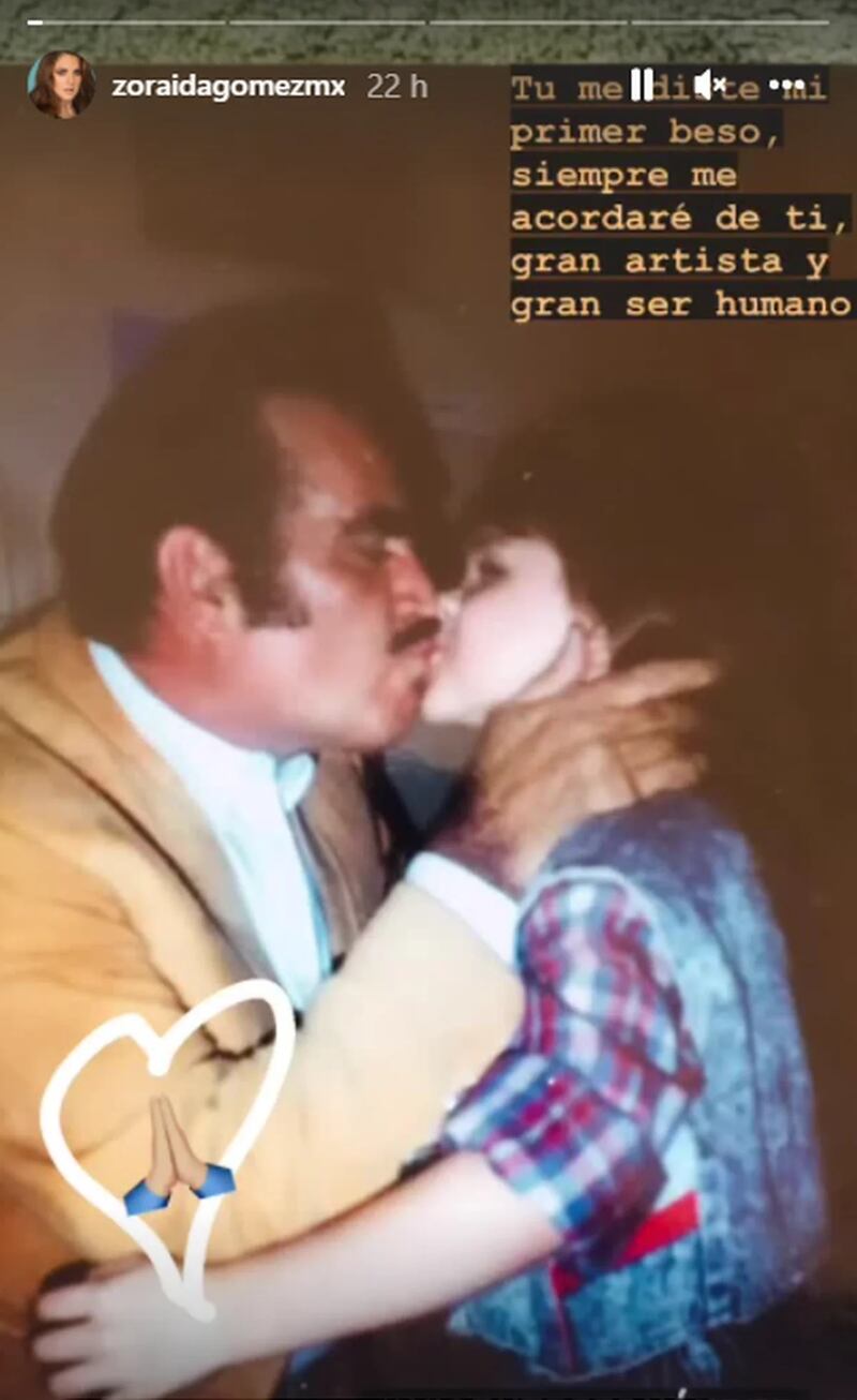 La actriz de la telenovela Rebelde subió a una historia de Instagram una foto en la que aparece ella de pequeñita junto al "Charro de Huentitán"; sin embargo, la situación dio mucho de qué hablar entre los usuarios de internet pues el icono de la canción ranchera está besando a Zoraida en la boca.