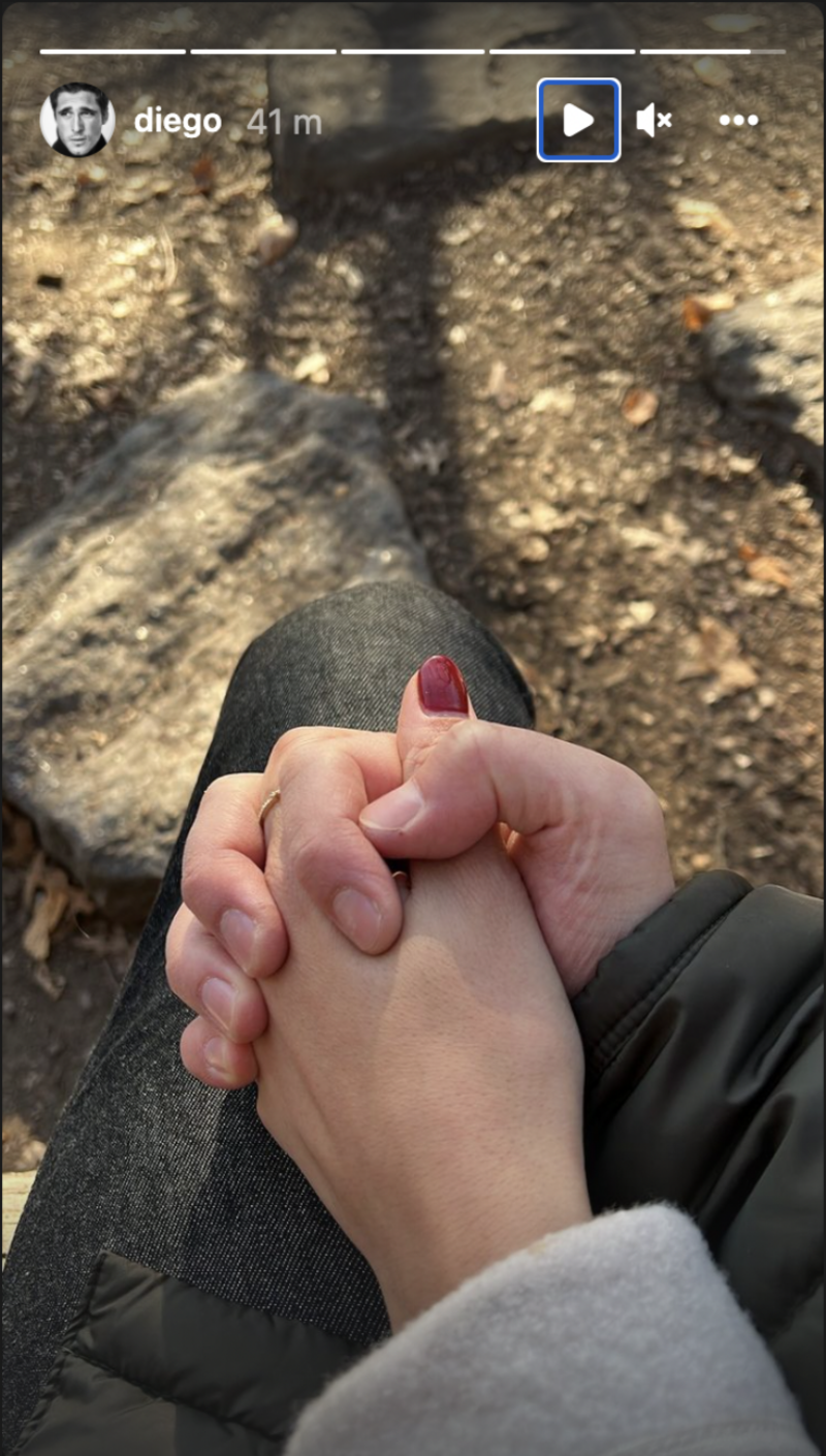 En las historias que subió Diego aparece tomado de la mano de Renata, con quien comenzó un noviazgo hace un año, según indicaron las jóvenes estrellas en sus redes sociales cuando celebraron su primer aniversario.