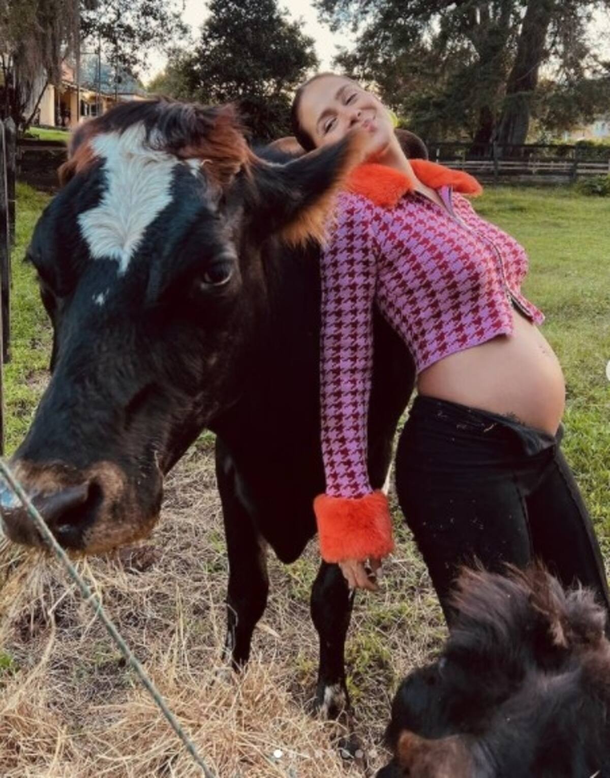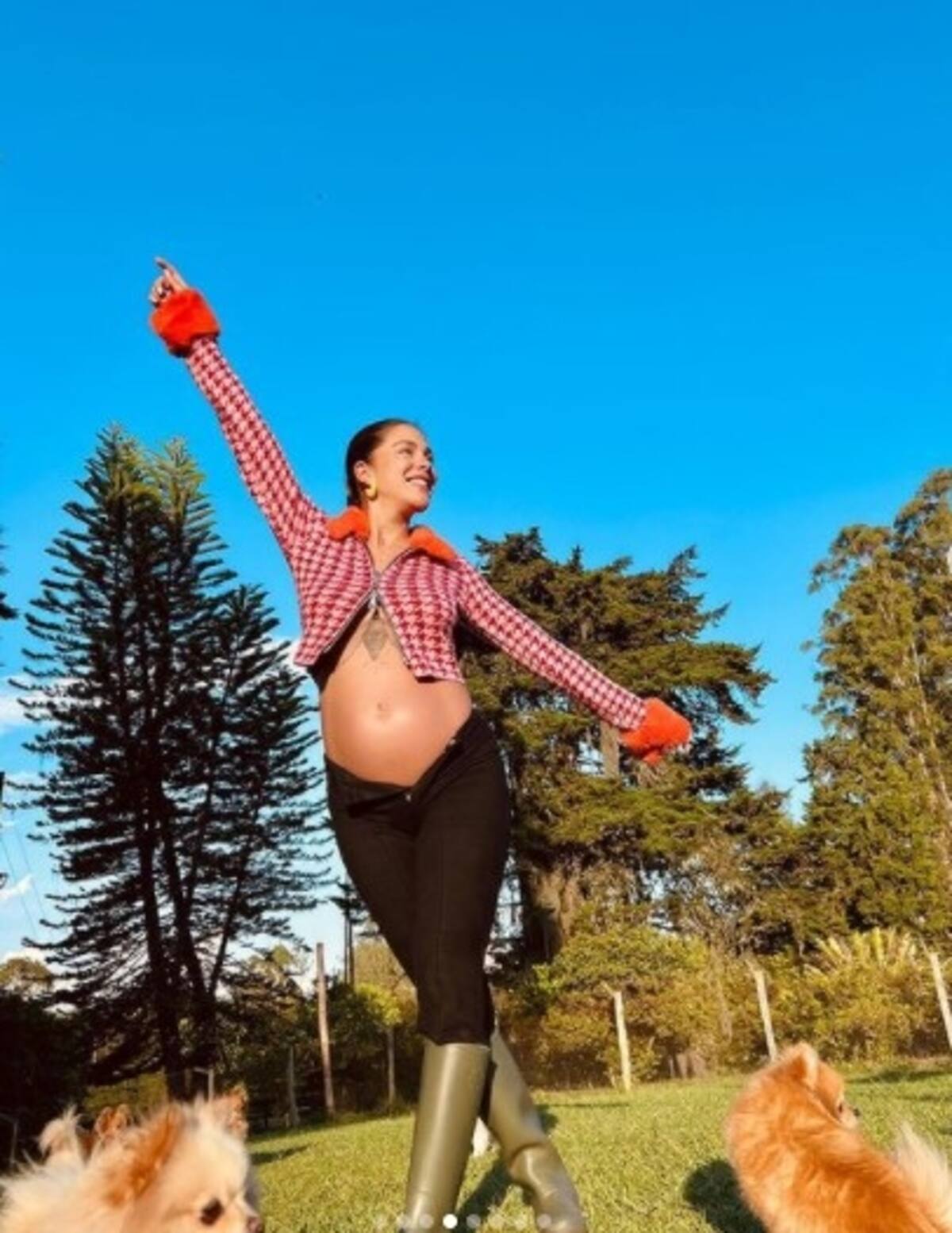 "Perdón la intensidad pero, primero! Ustedes saben que si aparezco es porque estoy feliz y segundo..! llevaba mucho con ganas de chicanearles mi barriguiña. Que estos días nos permitan tomar la fuerza para continuar siempre con más ganas … Que el 2022 seamos mejores que el 2021", posteó la cantante, para acompañar estas fotos desde la finca que tienen junto a Mike Bahía en Colombia.