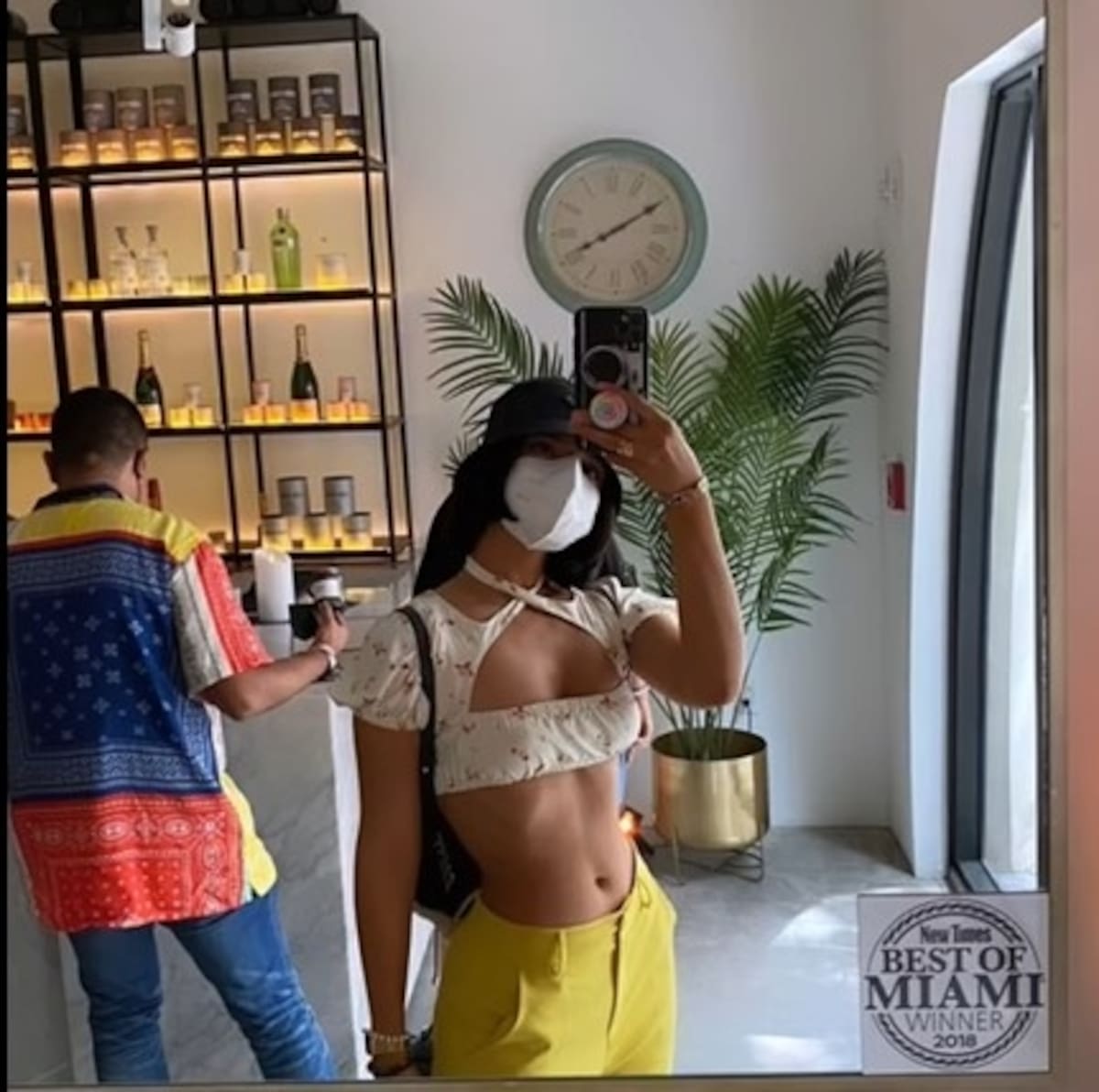 Una postal de su paso por Miami, Florida, donde lució un vestuario muy propio de la época veraniega y el lugar para registrarlo. Otra de las imágenes cautivadoras de la temporada.