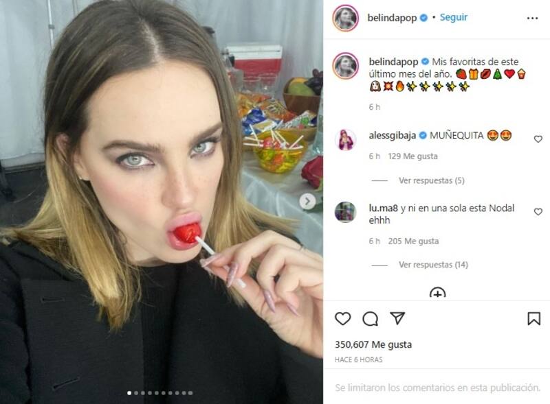 Belinda escogió sus fotos favoritas del último mes del 2021. Y hubo una de ellas que no pasó inadvertida en la cuenta de Instagram de la cantante mexicana de origen español que cuenta con 14 millones de seguidores en la red social.