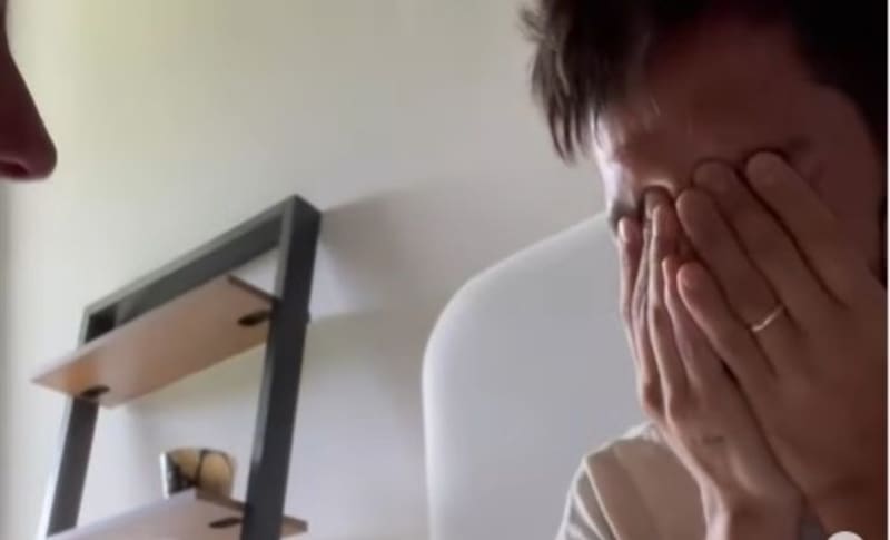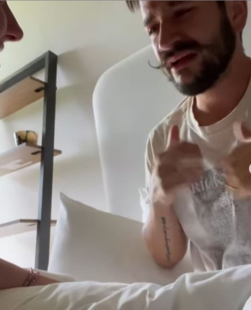 No puede haber certeza absoluta. Sólo Camilo y Evaluna lo saben, pero lo más probable es que el momento en que el cantante se tapa la cara con la polera que viste, sea cuando su esposa le está revelando el secreto más íntimo.