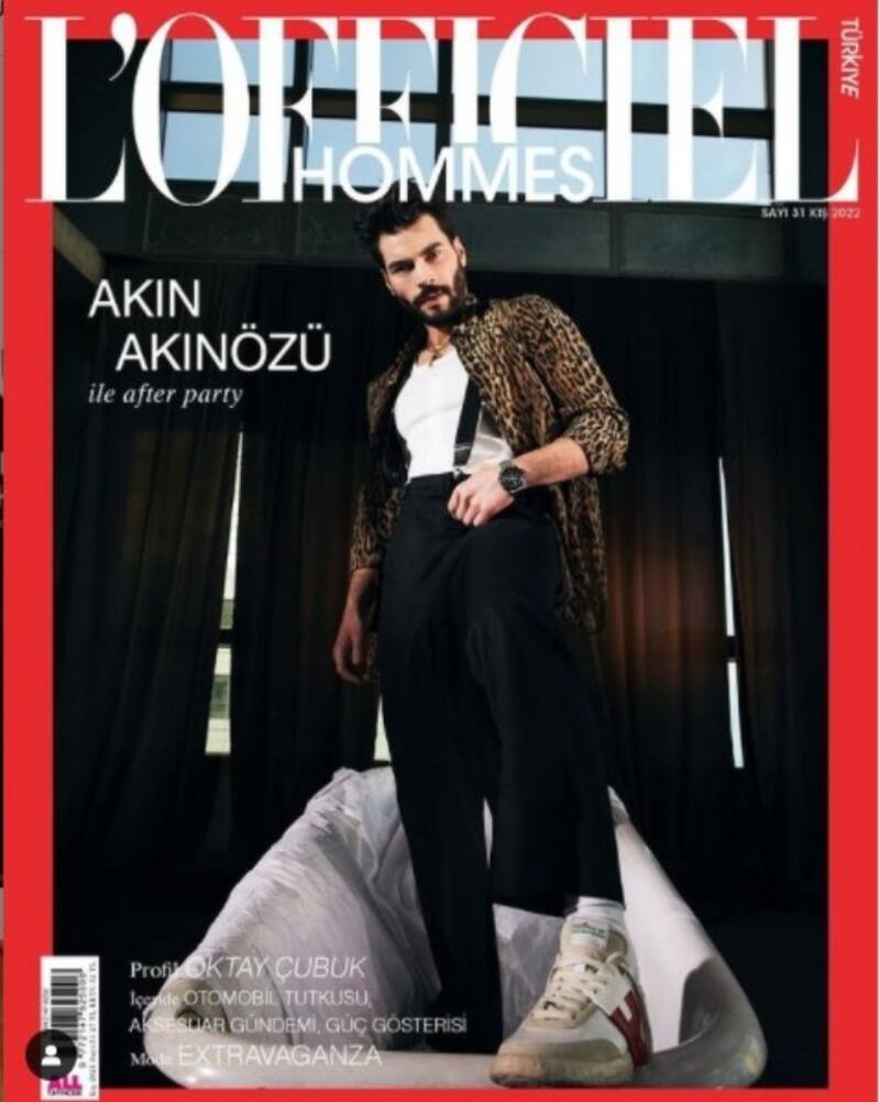 Esta vez la oportunidad estuvo acorde con las circunstancias: la celebración de fin de año en Turquía. La edición de la revista L'Officiel Hommes en su país lo eligió para que adornara su portada de invierno. Y la publicación lanzó la fotografía de un Akin Akinözü sobre una tina, vestido con una chaqueta aleopardada, una polera blanca tipo polo, pantalones anchos y oscuros sujetados por suspensores y unas zapatillas deportivas.
