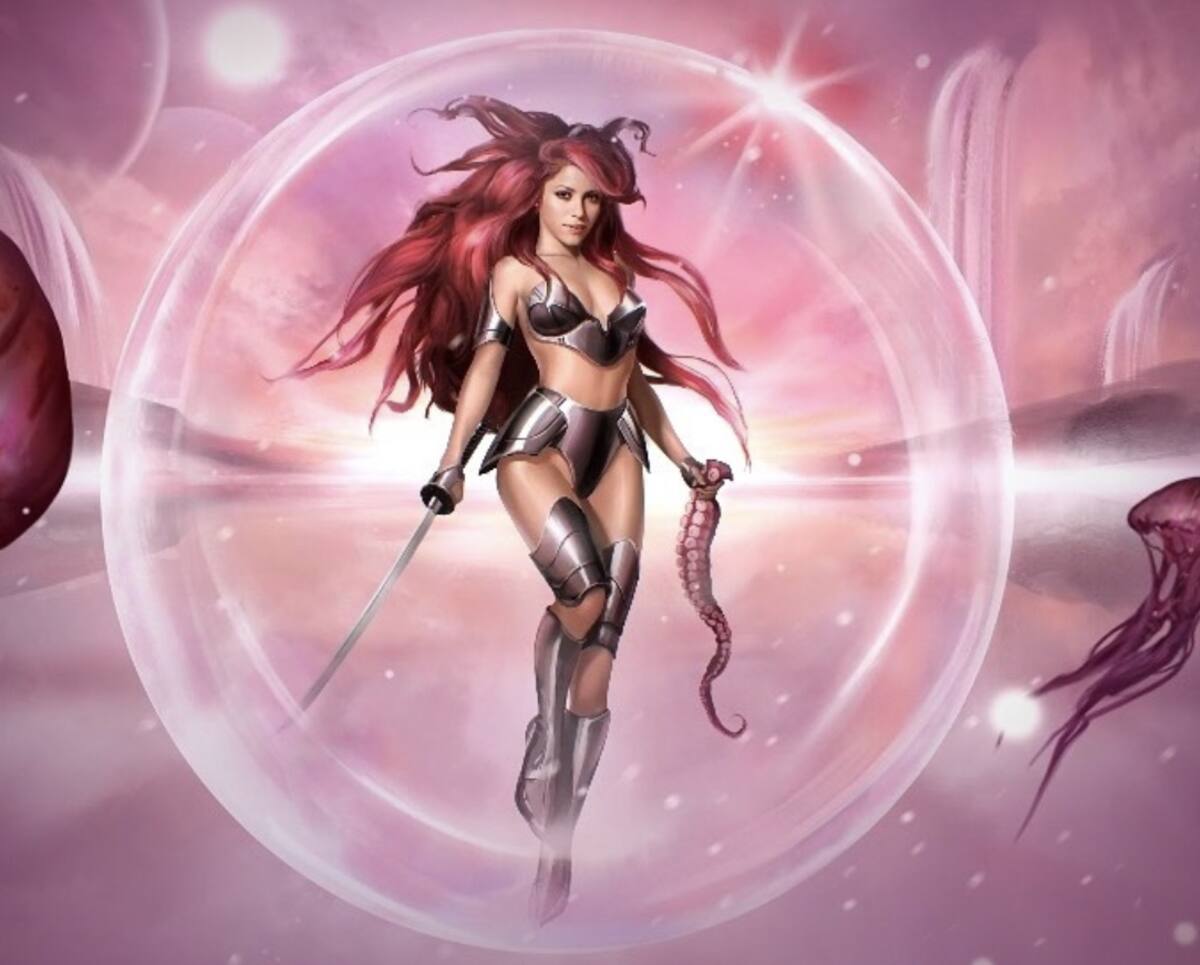 La obra se trata de una ilustración en la que aparece Shakira al estilo amazona con una larga cabellera roja y ataviada con una diminuta armadura mientras en que una mano sostiene una espada y en la otra un tentáculo.