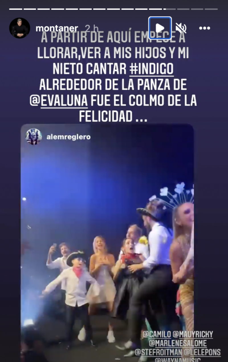 Aunque Evaluna fue dama de honor de Stefi y en tanto en los videos que se han filtrado así como en los que ha compartido la familia se le ve muy animada cantando y bailando luciendo su barriguita en un vestido negro y botas vaqueras, la próxima mamá ha preferido guardar para ella lo mejor de la boda. Incluso hay imágenes de Evaluna, Camilo, Ricky y Mau quienes subieron al escenario para interpretar la canción Índigo, la cual está dedicada al próximo bebé Montaner que nacerá en abril.
