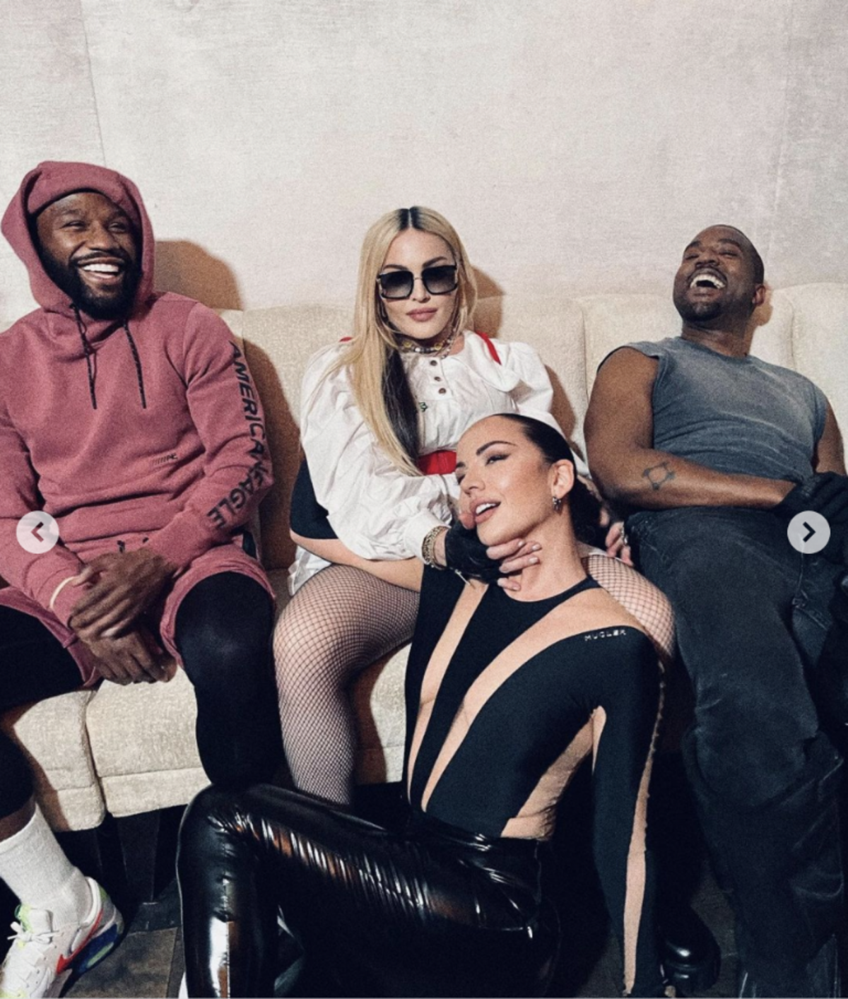 Ahora fue Madonna quien compartió una serie de imágenes en la que sale junto a Julia Fox y Kanye West. “Fui a cenar con Julia para hablar sobre mi película y aparecieron otras personas”, escribió la “Reina del pop” para acompañar las fotos que fueron tomadas por el artista Ricardo Gomes, a cargo de documentar los movimientos de la intérprete de Like a Virgin.