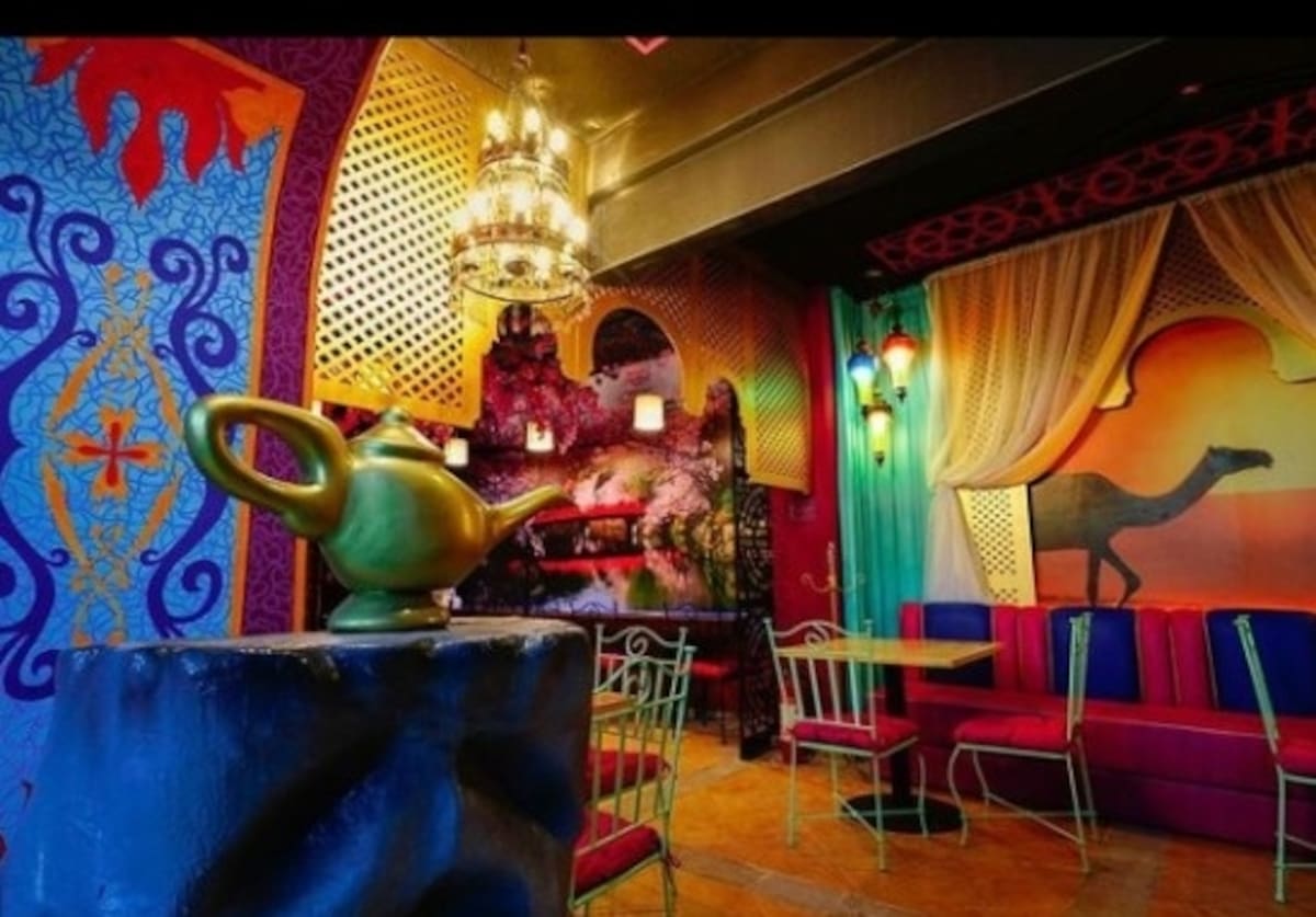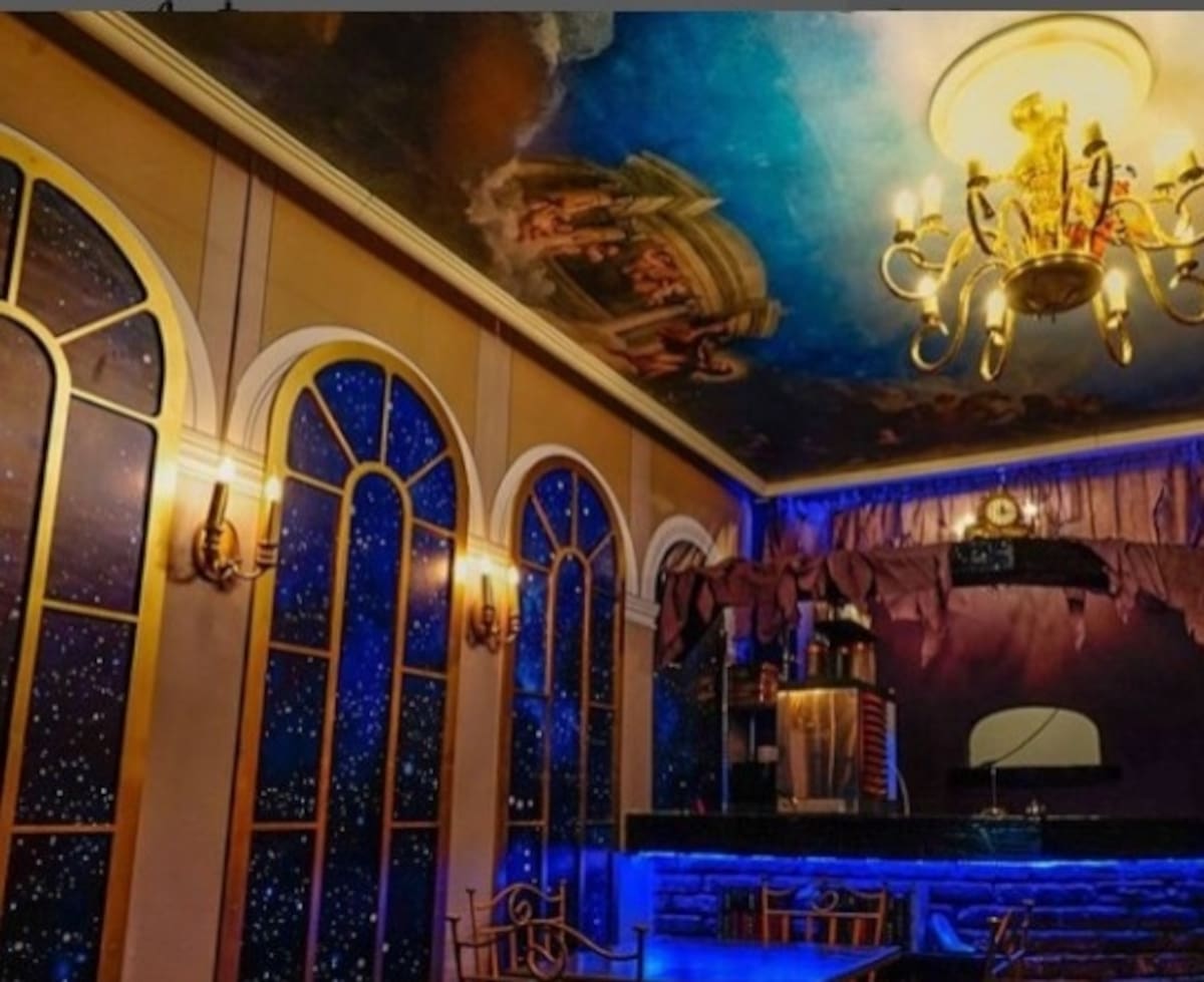 El sitio contiene detalles que hacen alusión a estos clásicos, como los tentáculos de Úrsula que adornan las paredes, la lámpara de Aladín, un sillón en forma de concha, ratones en las escaleras, un candelabro grande que acompañan de ventanales dorados, entre otras cosas.