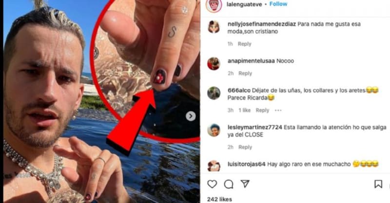 Resulta que el cantante luce una peculiar decoración en sus uñas, incluso con unas flores pintadas, lo que provocó que algunos internautas se volcaran en comentarios en las distintas cuentas donde retomaron esta publicación e incluso señalaran: “¿Por qué se pinta las uñas con florecitas?”, "¿Cuáles son las manos de él y las de ella?”, fueron algunos de los comentarios que lanzaron los usuarios.