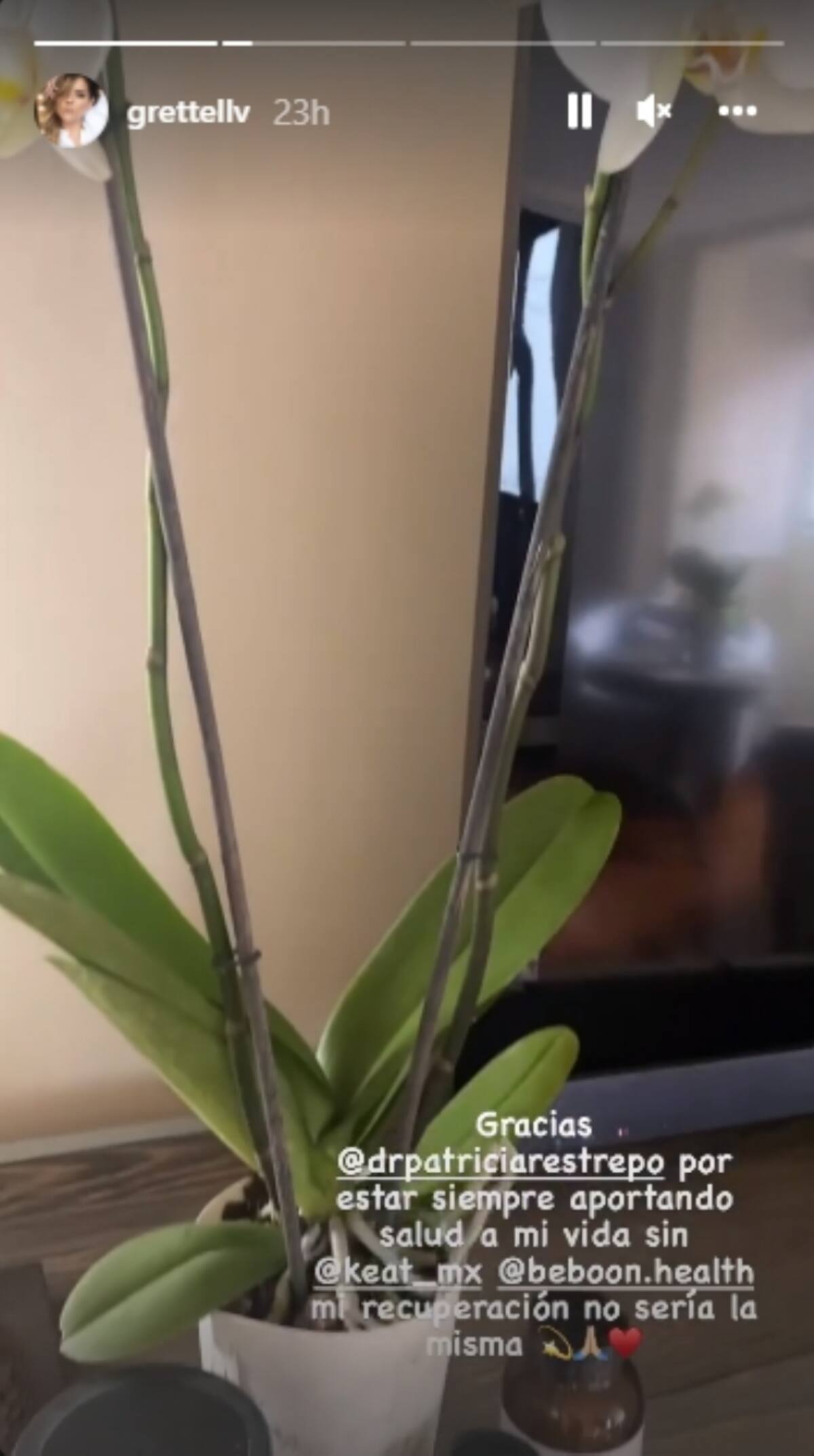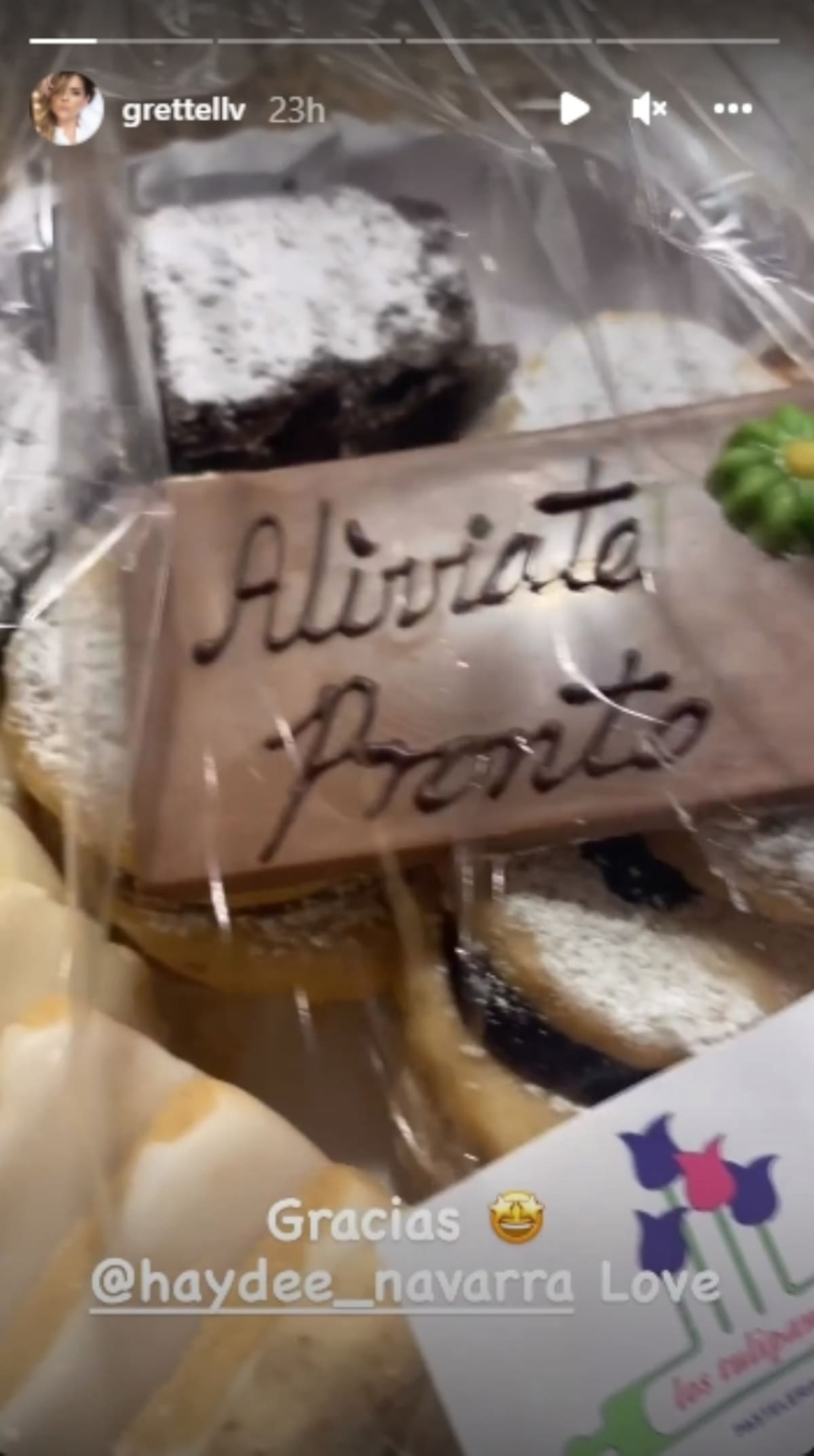 "La cirugía fue un éxito. Ahora estoy en casa recuperándome, no puedo hablar mucho ya que me intubaron y duele. Ya les contaré los pormenores", escribió Grettell en sus historias de Instagram, al mismo tiempo que compartió imágenes de flores que le hicieron llegar sus amigos cercanos.