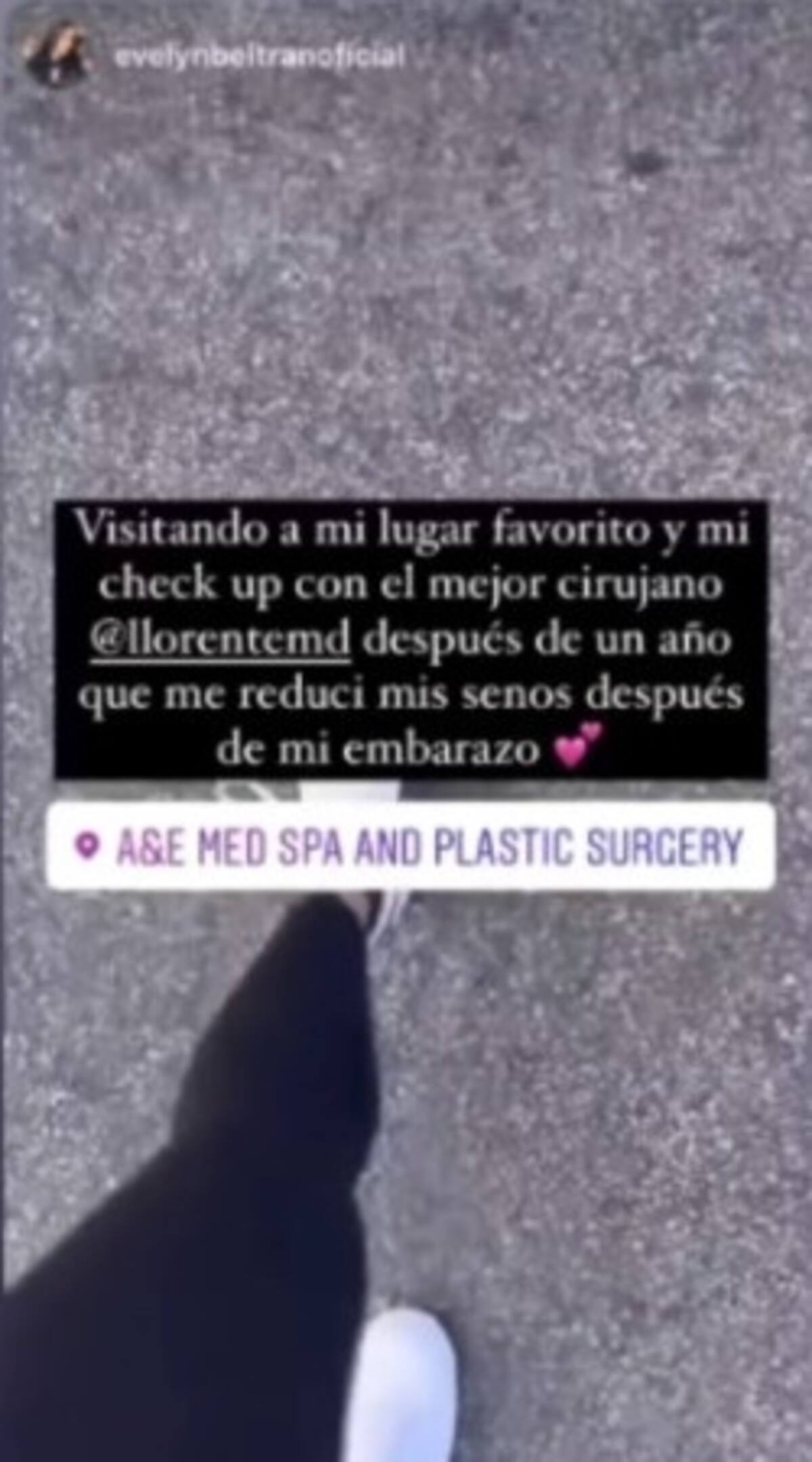 "Visitando mi lugar favorito y mi check up con el mejor cirujano @llorentemd después de un año que me reduje mis senos después de mi embarazo", escribió junto a una foto donde se le ve caminando hacia la clínica. La operación de reducción de busto que se realizó fue luego de tener a su hijo Timothy Love quien nació de la relación que tuvo con Timbo Domínguez de quien ya se separó.