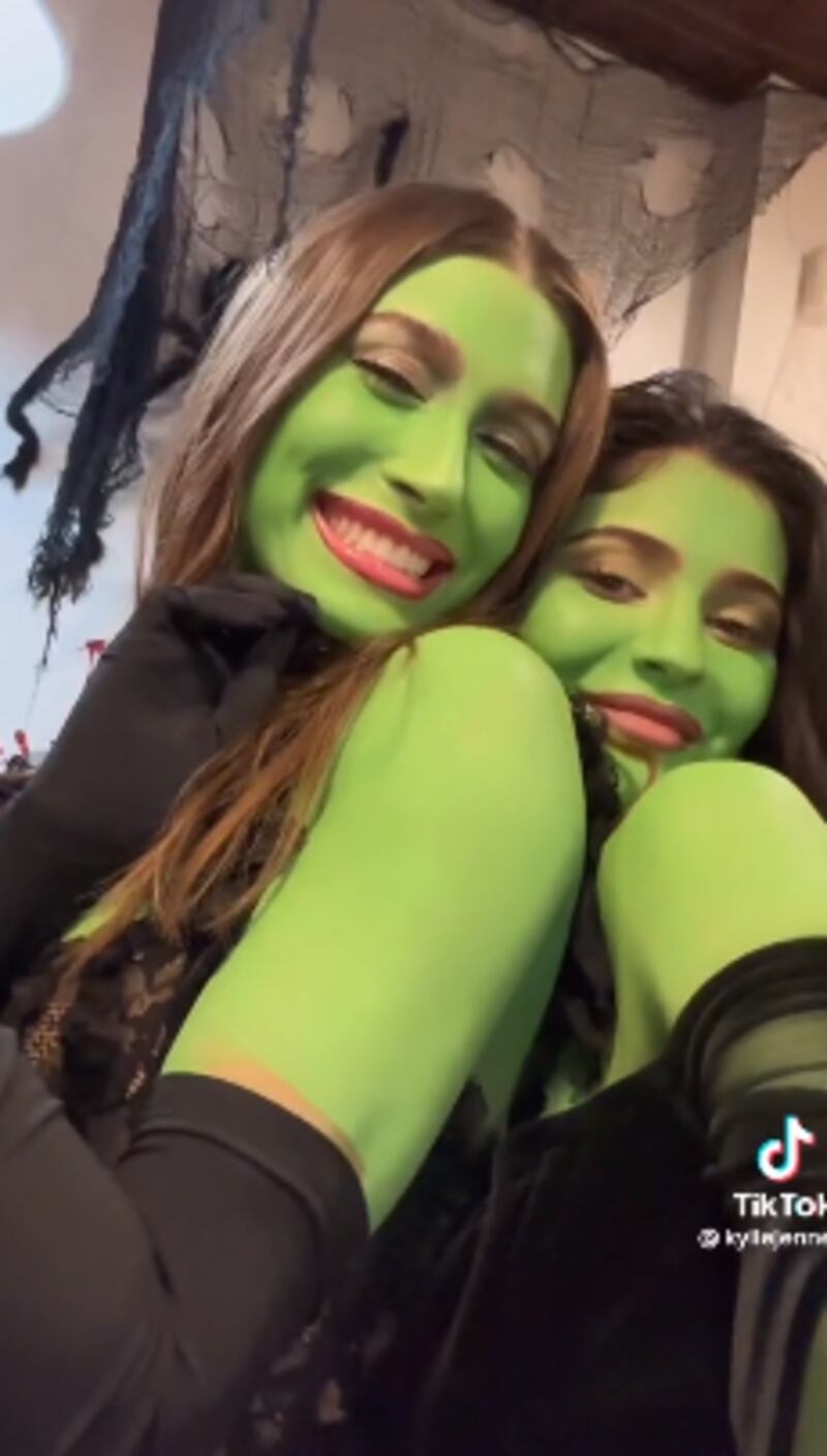 Aunque todavía quedan algunas semanas para el 31 de octubre, la joven empresaria y la modelo se han adelantado a la fecha y ha posado con su primer disfraz de este año. Ambas celebridades se han pintado de verde para emular a la icónica Bruja Mala del Oeste de El Mago de Oz, pero les han dado su propio estilo luciendo un vestido negro semitransparente con los hombros al aire, guantes largos negros y unos collares a juego.