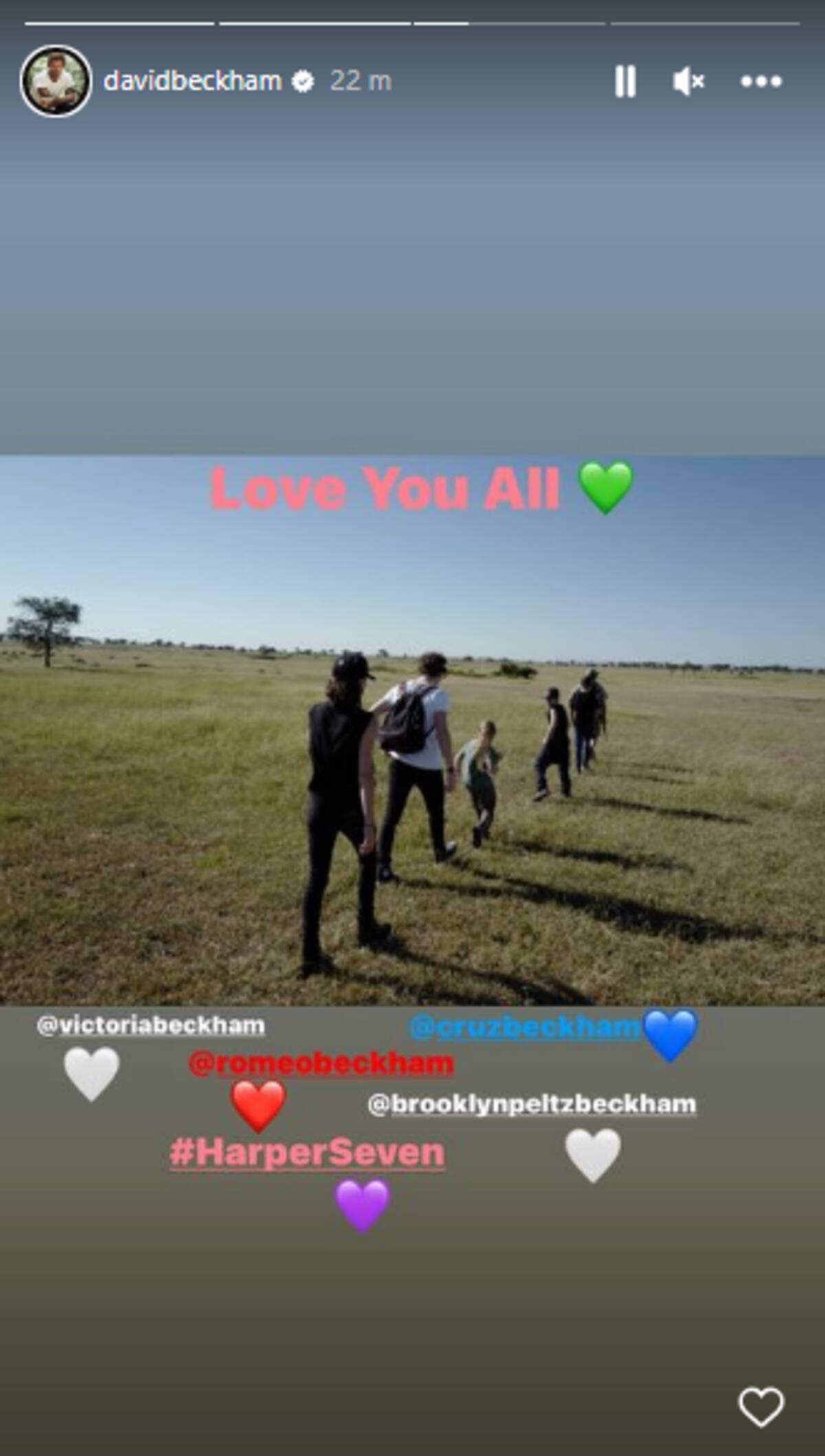 A través de las historias de Instagram del ex futbolista profesional se pudo evidenciar una serie de imágenes de los Beckham disfrutando de un paseo al aire libre, pero algo que llamó la atención es que en el grupo familiar no se encontraba la modelo estadounidense.