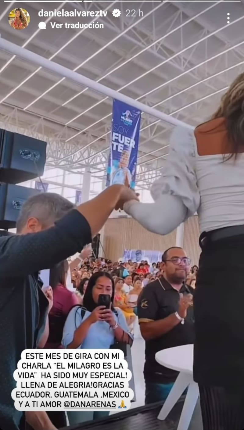 Esta no es la primera vez que Arenas realiza este tipo de acciones que Álvarez le reconoce, y como ya es costumbre le agradeció una vez más por estar a su lado en este momento importante. “Este mes de gira con mi charla El milagro es la vida. Ha sido muy especial, llena de alegría. Gracias Ecuador, Guatemala, México, y a ti amor @danarenas”, escribió.