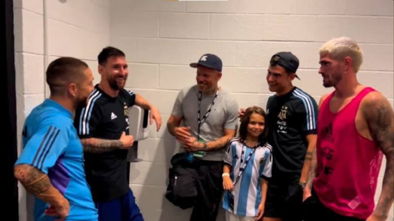 Rodrigo de Paul trata de romper el hielo y le pregunta al niño si sabe cuántos goles hizo el capitán del equipo. Milo lo mira confundido y no se atreve a entregar una respuesta, pero luego dice “dos”, acertando a los tantos convertidos por la “Pulga” en ese partido. Antes de finalizar el registro, De Paul le pregunta por su jugador preferido: “Lio, ¿cierto?”, dice el futbolista y el niño responde con timidez “Messi”.