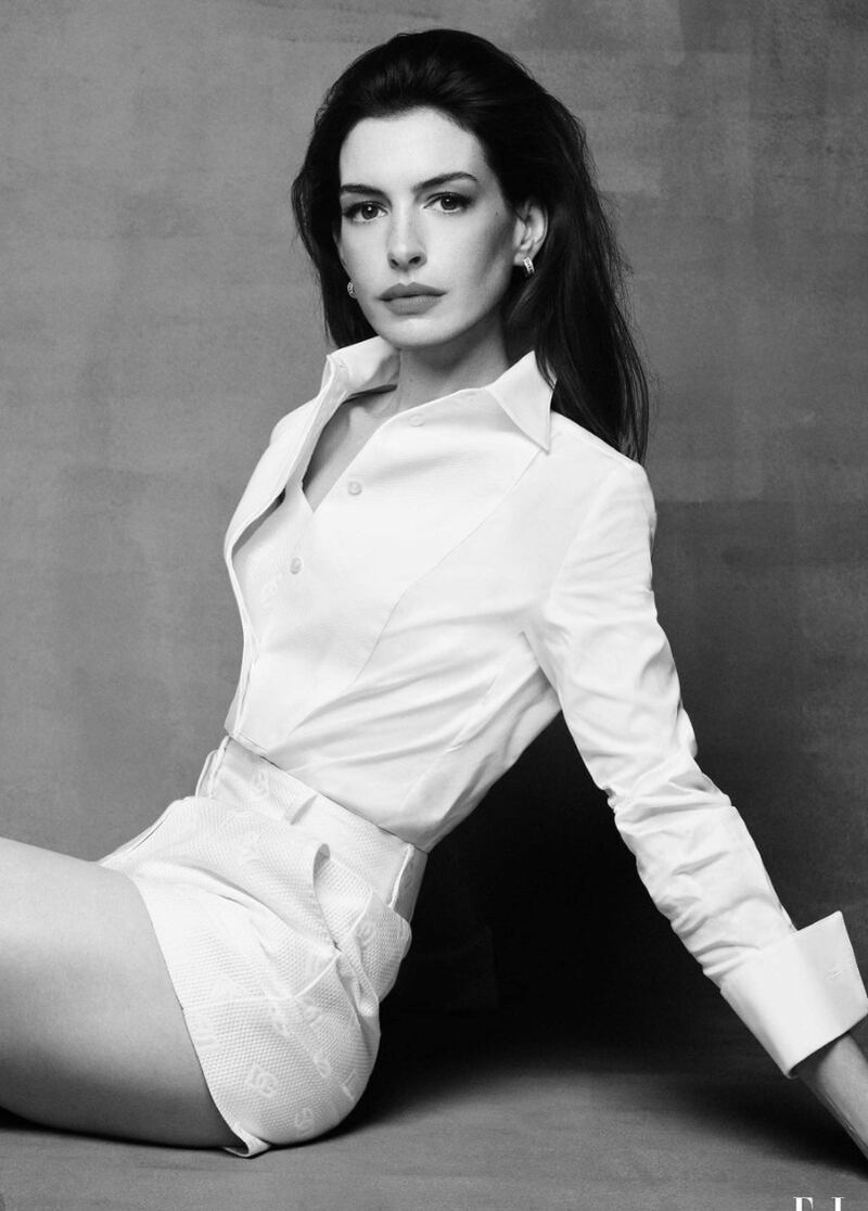 La actriz lució diversos atuendos, entre ellos unos shorts y camisa blanca de Dolce & Gabanna, un traje sastre en tono crema que portó con chaleco de Alexandre Vauthier, y un vestido corto de encaje negro de Velntino. Algunos de los retratos están en blanco y negro y otros muestran los colores de las prendas que ataviaron a Hathaway. Olivia Wilde, Zoë Kravitz, Ariana Debose, Michelle Yeoh, Sydney Sweeney y Sigourney Weaver, son otras de las mujeres que participaron en la edición especial de la revista.