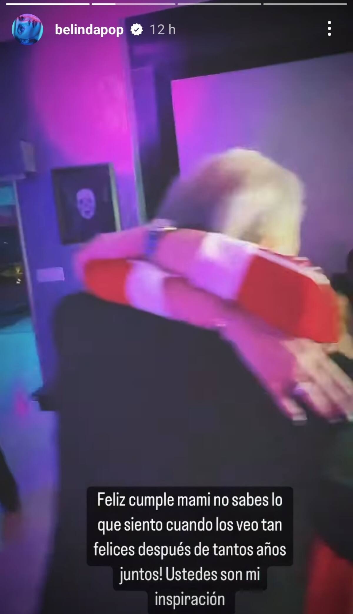 El papá de la intérprete de Egoísta se acercó a su esposa, la abrazó y le dio un beso, posteriormente ambos se quedaron juntos por unos minutos. "Feliz cumple mami. No sabes lo que siento cuando los veo tan felices después de tantos años juntos. Ustedes son mi inspiración", expresó la compositora.