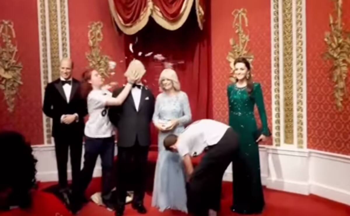 "La ciencia es clara, la demanda es sencilla: detengan las nuevas licencias de petróleo y gas", manifestaron los activistas mientras arrojaban los pasteles a la escultura del soberano, la cual está rodeada de la de otros miembros de la familia real británica como lo es de la Reina Camila (75), el príncipe William (40) y Kate Middleton (40).