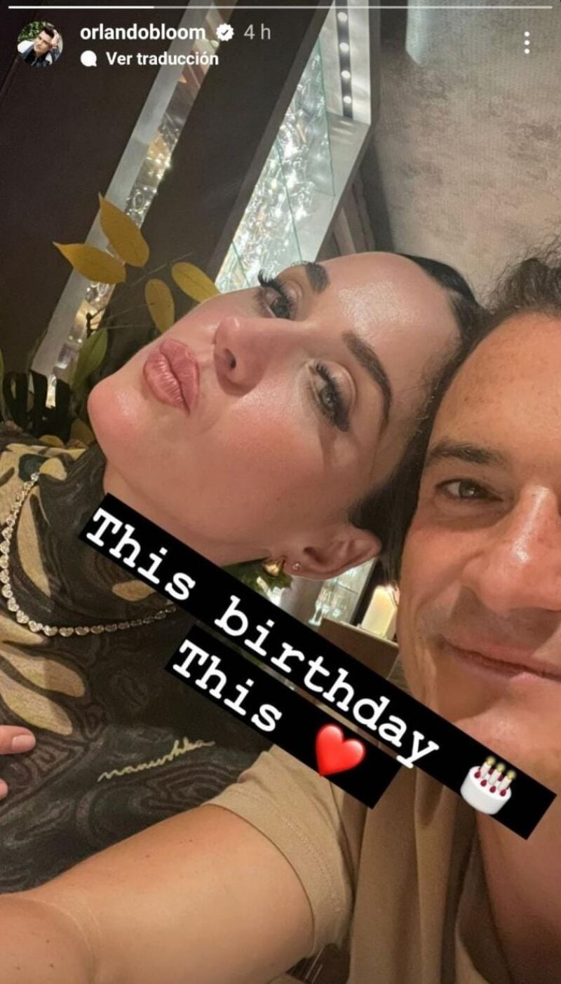 Orlando Bloom también usó sus historias de la popular red social para compartir una foto similar, pero en está oportunidad la cantante aparece enviando un beso. El cumpleaños de Katy Perry se da solo días después de que se hiciera viral un video de la cantante teniendo problemas con uno de sus párpados en medio de un concierto, se especuló que el indicio de una parálisis facial fue producido por el estrés.