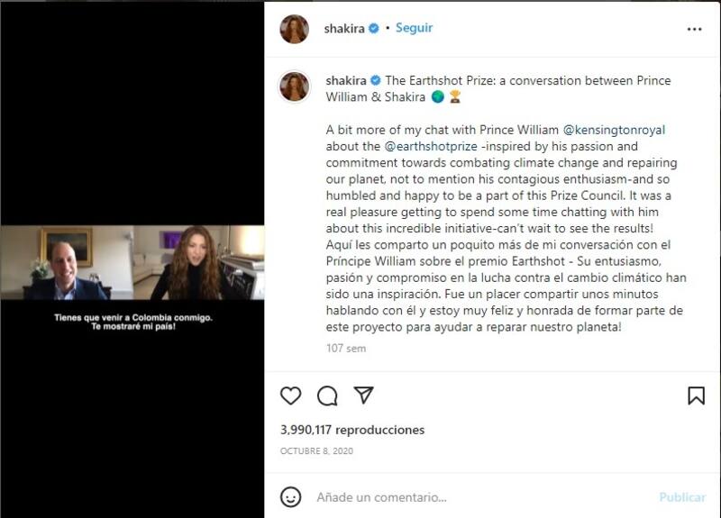 Sucedió el 8 de octubre de 2020 cuando el heredero al trono tuvo una conversación virtual con la cantante colombiana, quien en ese momento formó parte del jurado de los premios The Earthshot, que premian aquellas ideas que puedan acabar con los problemas medioambientales. Además de Shakira estuvieron como invitados la actriz Cate Blanchett y la reina Rania de Jordania, entre otros.
