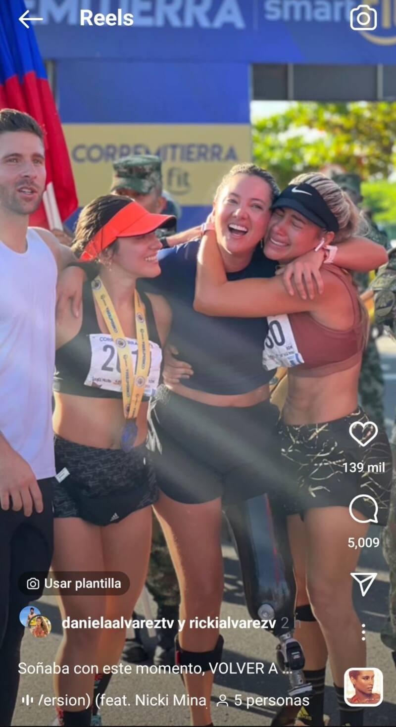 En el video que compartió se puede ver que quien la lleva de la mano es su hermano, el que corre con ella y nunca la suelta hasta que llegan al final en donde sus primas ya la esperaban con los brazos abiertos, lágrimas y caras de felicidad. “Gracias hermanito @rickialvarezv por creer en mí siempre y motivarme en cada paso, una vez más llegamos a la meta juntos”, indicó Álvarez en sus agradecimientos.
