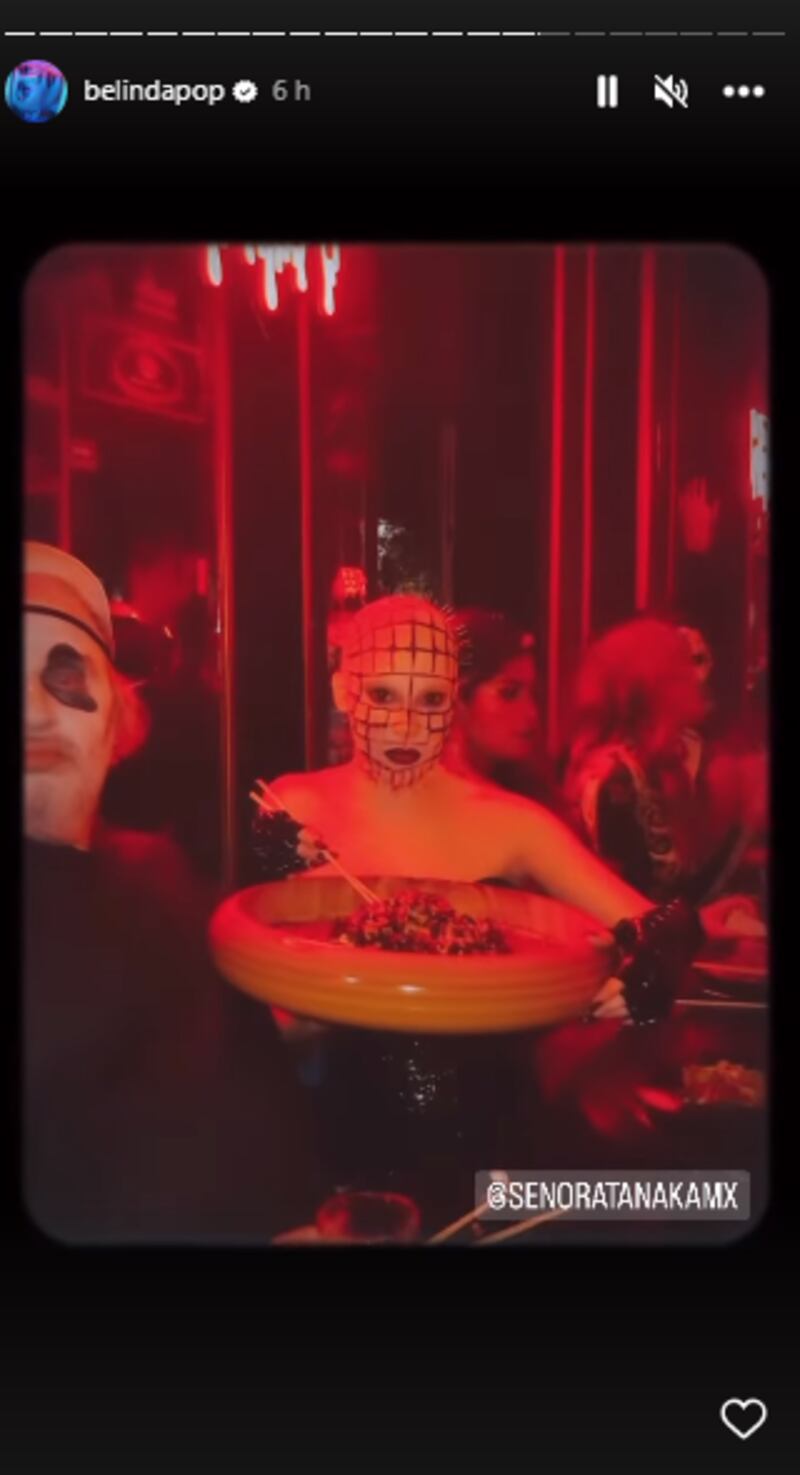 Fue a través de sus historias de Instagram donde la también actriz documentó parte de la celebración y sorprendió a sus fans con su disfraz, pues la intérprete decidió lucir como Pinhead, personaje de la película de terror de 1987, Hellraiser.
