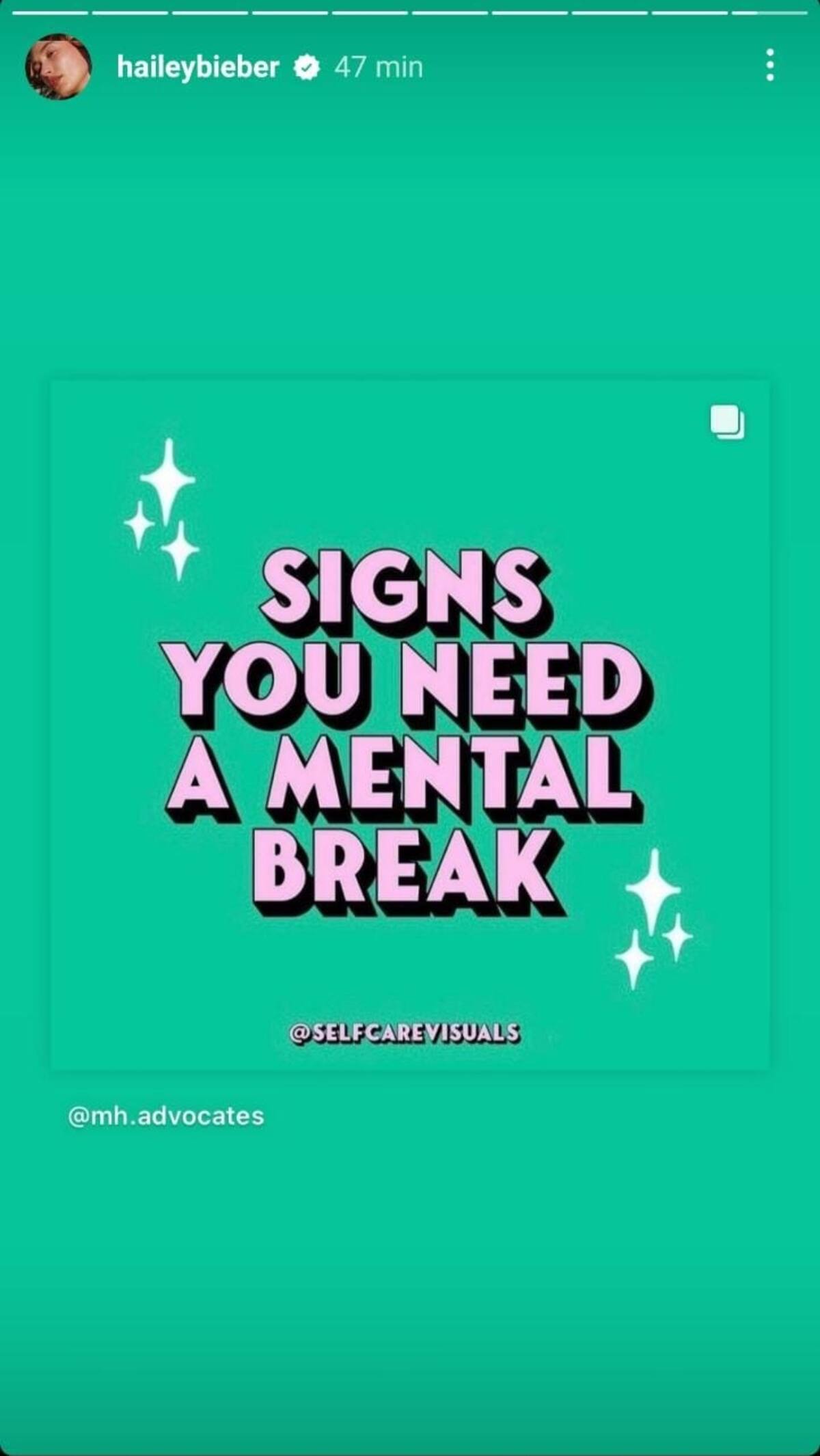 Debido al reciente anuncio que realizó Justin, su esposa compartió en sus historias de la popular red social una publicación en la que se abordan las "señales de que necesitas un descanso mental", dando a entender de que el cantante está pasando por esos síntomas, lo que lo llevó a tomar su decisión.