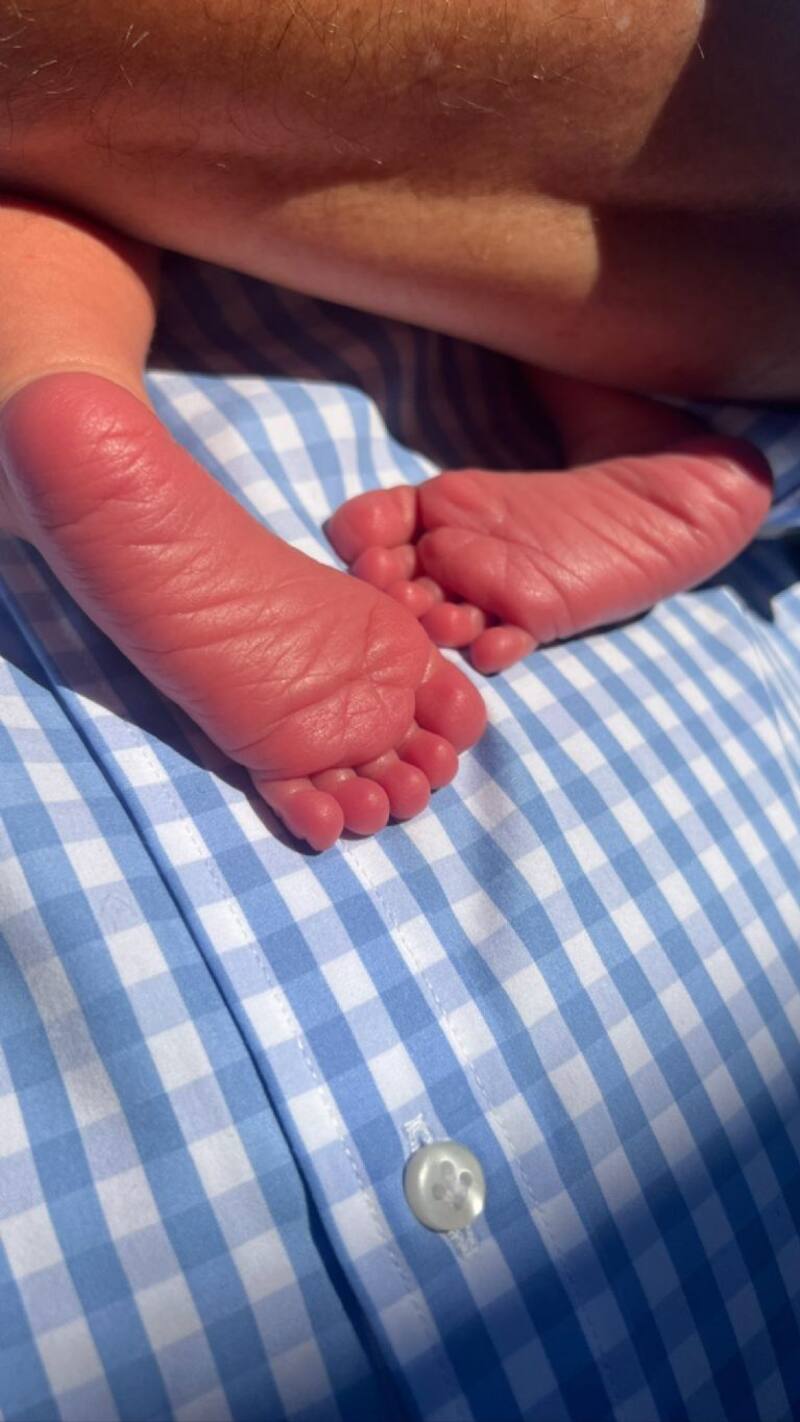 El joven padre también compartió con sus seguidores una imagen más de Apolo recostado en el pecho de alguien más, ya que se puede apreciar los pequeños pies en la camisa azul a cuadros de una persona pero sin verse quien está cargando al nuevo primo de Índigo, la hija de Evaluna Montaner y Camilo, quien ya cumplió seis meses de nacida.