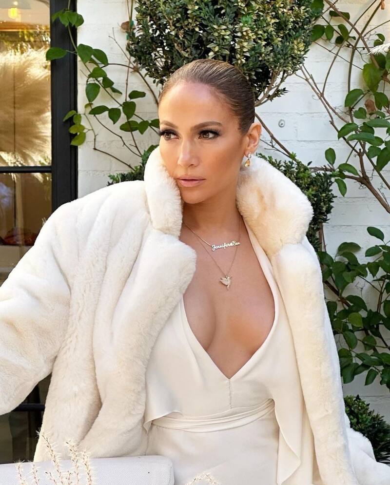 "Jenny From The Block" aprovechó el amplio escote del atuendo, que complementó con un abrigo de piel, para mostrar un collar con la inscripción "Jennifer & Ben". De acuerdo a Page Six, la joya es un colgante personalizado "Betty" creado por Jennifer Zeuner. Según el mismo medio, ese tipo de colgantes inician su precio en los 176 dólares.