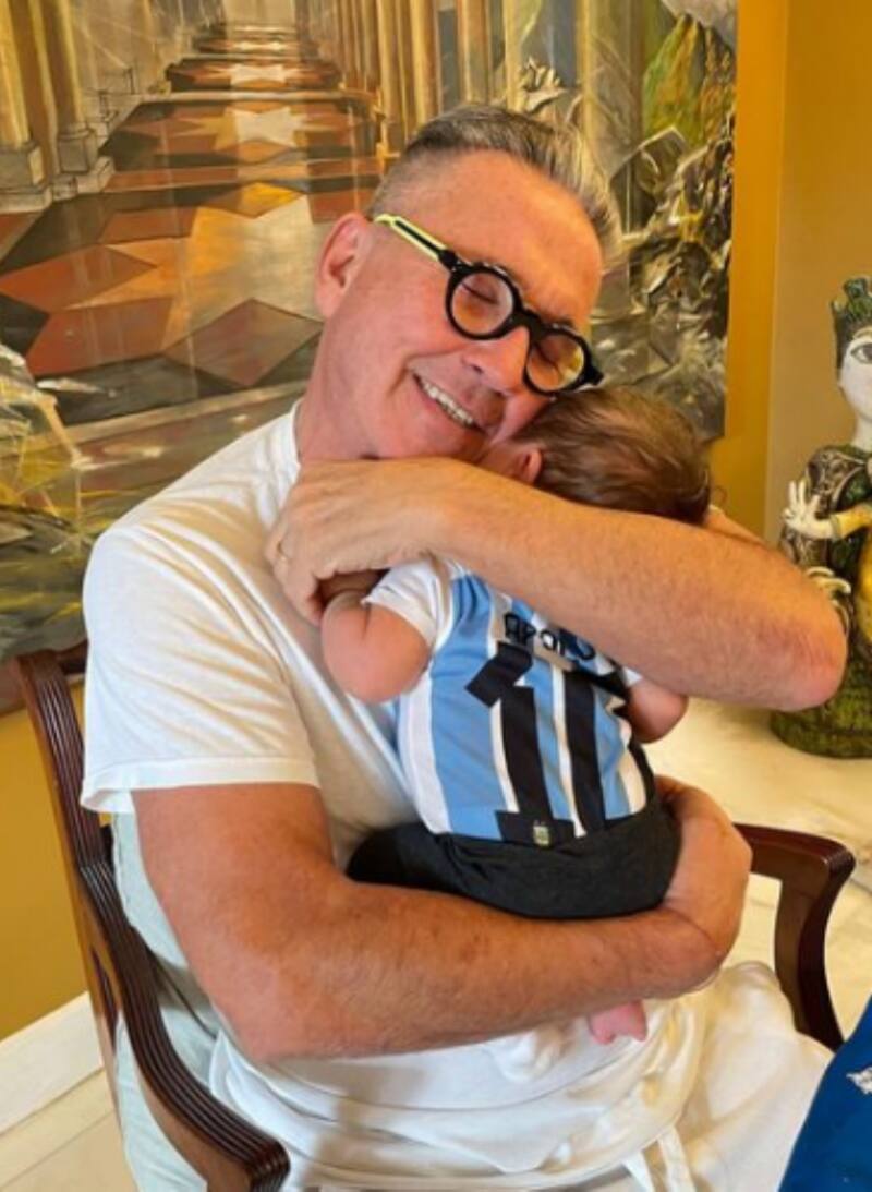 Con una emotiva publicación en su cuenta oficial de Instagram, el cantante compartió con sus seguidores una fotografía donde sostiene en sus brazos a su nieto Apolo, hijo de Mau Montaner (29) y Sara Escobar (32), y se puede observar al pequeño luciendo una camiseta de Argentina con el número 10 y su nombre en la espalda.