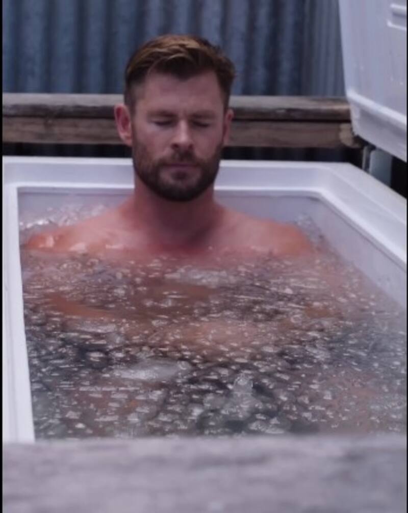 El actor australiano mostró cómo fue su primera experiencia prácticamente sumergido durante varios minutos en una tina de agua a bajísima temperatura. Hemsworth comentó que lo más difícil fueron los primeros segundos, donde la sensación fue brutal, pero que después el cuerpo se comenzó a adaptar, y que una vez fuera de la tina, su estado de relajación fue verdaderamente reparador.