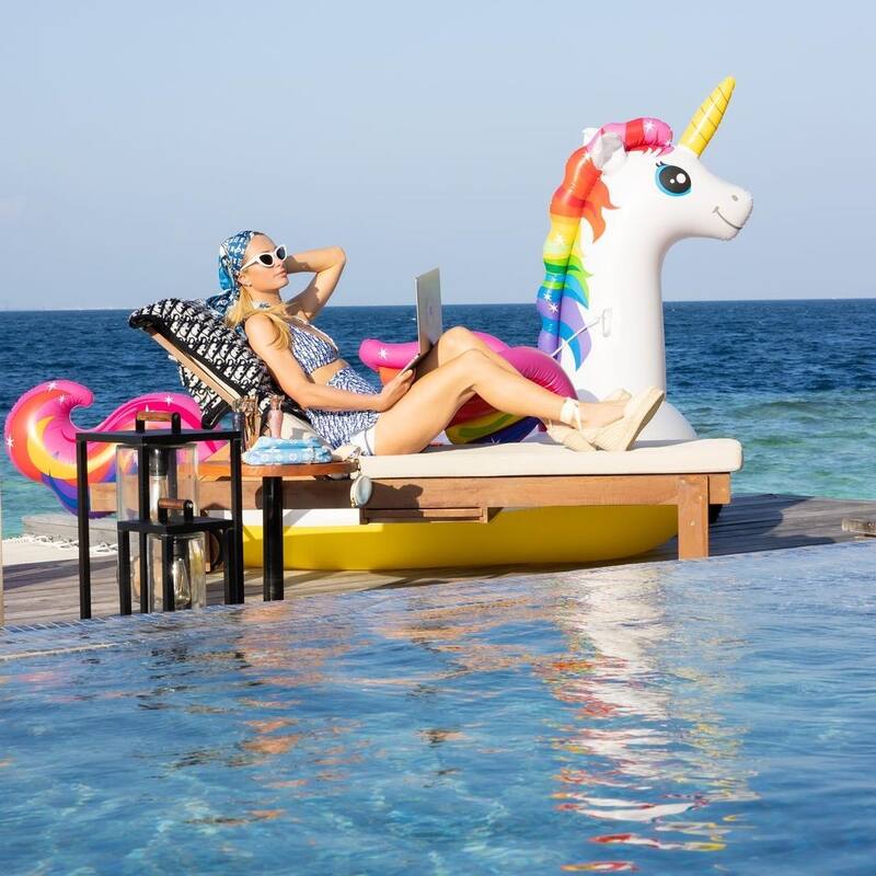 "¡Esta isla privada es verdaderamente el paraíso en la Tierra! ¡Tan hermoso, romántico y relajante aquí! ¡Se siente como un sueño! Me siento tan afortunada y bendecida de estar aquí con mi amor celebrando nuestro aniversario", escribió Paris Hilton. El complejo hotelero en que se quedaron pertenece a la cadena Hilton, y el precio de una noche supera los dos mil 500 dólares.