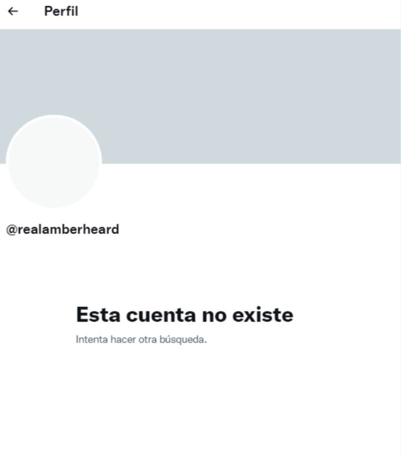 El usuario de la actriz en Twitter ya no está disponible, pues al escribir en el buscador: @realAmberHeard, la página de inmediatamente presenta el aviso de que la cuenta no existe. Esto ocurre a días de que Musk, ex pareja de Amber, comprara la compañía por 44 mil millones de dólares.