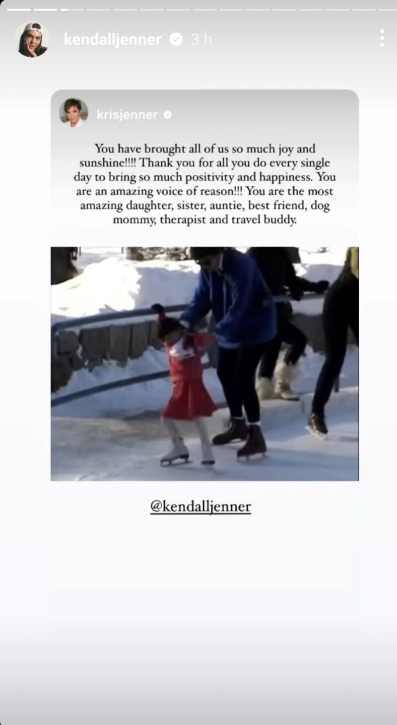 Su mamá, Kris Jenner, subió varias historias a Instagram en las que describió lo que su hija significa para ella. “Feliz cumpleaños a mi preciosa Kenny. Me robaste el corazón desde el momento en que naciste, eres tan increíble y especial. Le agradezco a Dios todos los días por haberme bendecido siendo tu mamá”, comentó.