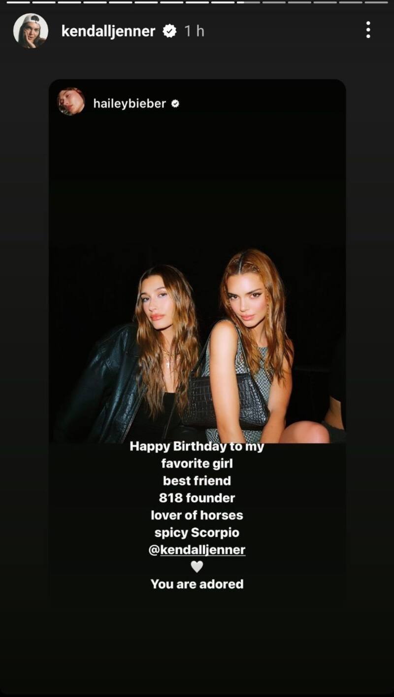 Hailey Bieber subió una foto con la modelo en la que indicó que es su persona favorita. “Feliz cumpleaños a mi persona favorita, la fundadora de 818, amante de los caballos. Eres adorable”, señaló.