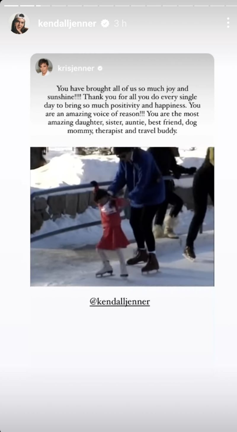 Su mamá, Kris Jenner, subió varias historias a Instagram en las que describió lo que su hija significa para ella. “Feliz cumpleaños a mi preciosa Kenny. Me robaste el corazón desde el momento en que naciste, eres tan increíble y especial. Le agradezco a Dios todos los días por haberme bendecido siendo tu mamá”, comentó.