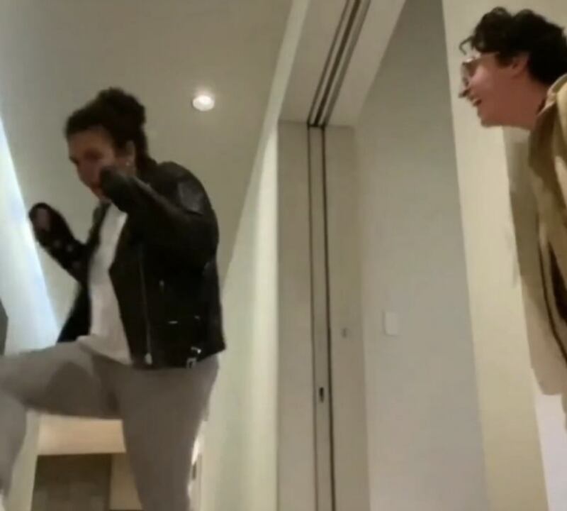 En el video se ve que la adolescente está bajando las escaleras de lo que parece ser su casa, y también se observa a un chico, presuntamente es amigo de la cantante, quien la espanta provocando que la artista salte y pegue un grito.