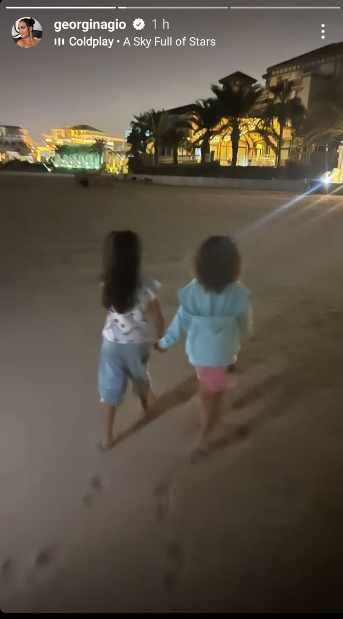 A través de redes sociales Georgina compartió un par de fotografías junto a Alana, Eva y Mateo, sus tres hijos pequeños que la acompañaron a dar un paseo sobre la arena con las olas del mar de fondo; sin mencionar nada, solo posteó este instante que tuvo con los niños en la noche.