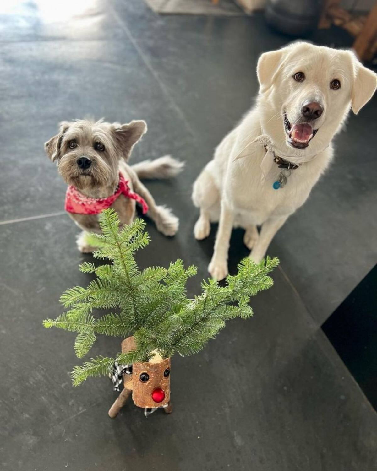 En su publicación, la ex esposa de Brad Pitt (58) también posteó un video en el que muestra la emoción que sintieron sus mascotas al ver el nuevo juguete, de hecho, los dos cachorros de la también productora de cine posaron junto al reno para una tierna fotografía familiar.