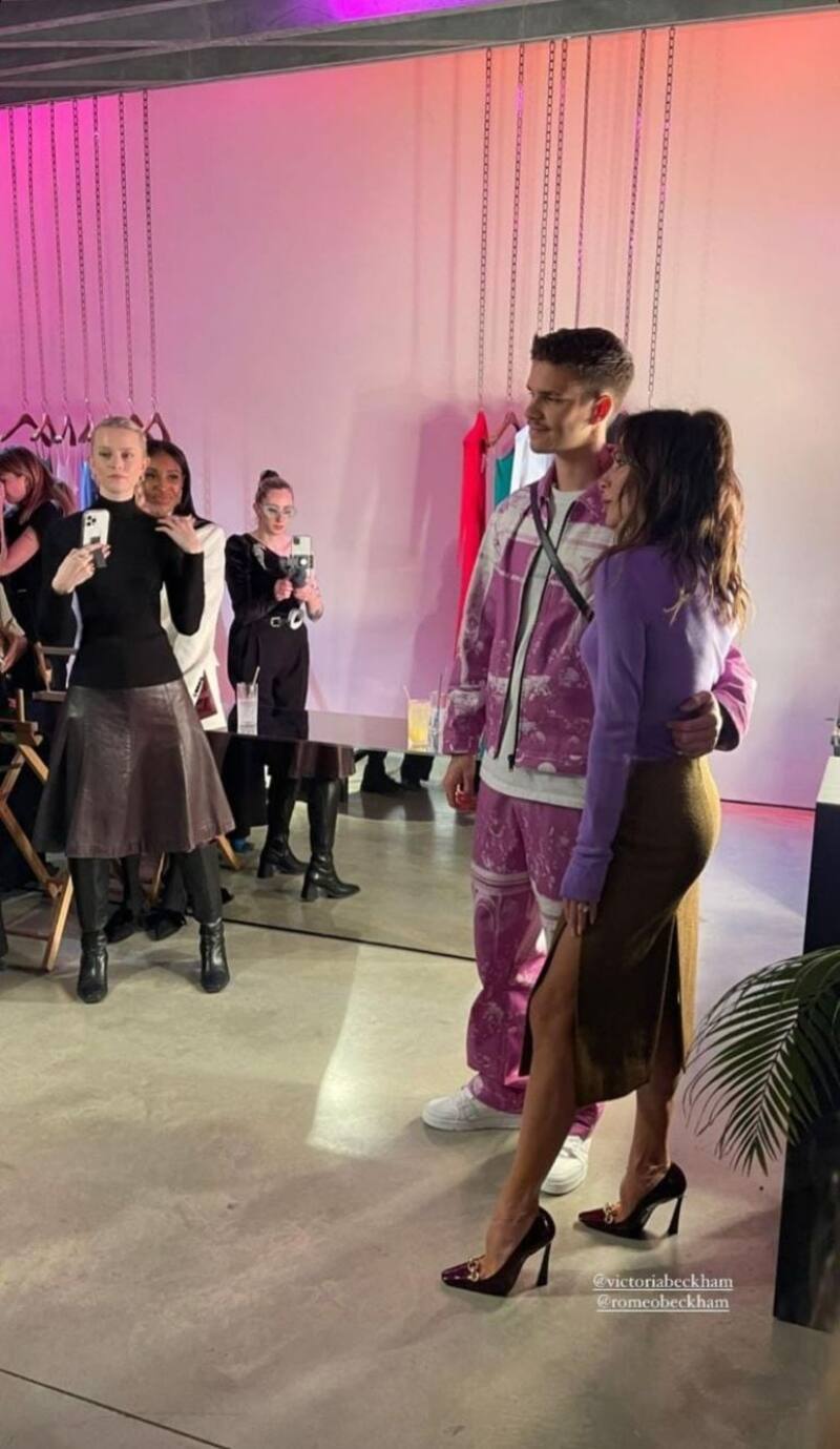 El segundo hijo de los famosos se robó las miradas mientras posaba junto a su madre, presumiendo su gran conexión al combinar sus atuendos. Ambos eligieron vestimenta de una tonalidad violeta, pero Victoria Beckham optó por un look más formal, mientras que Romeo lució un aspecto urbano.