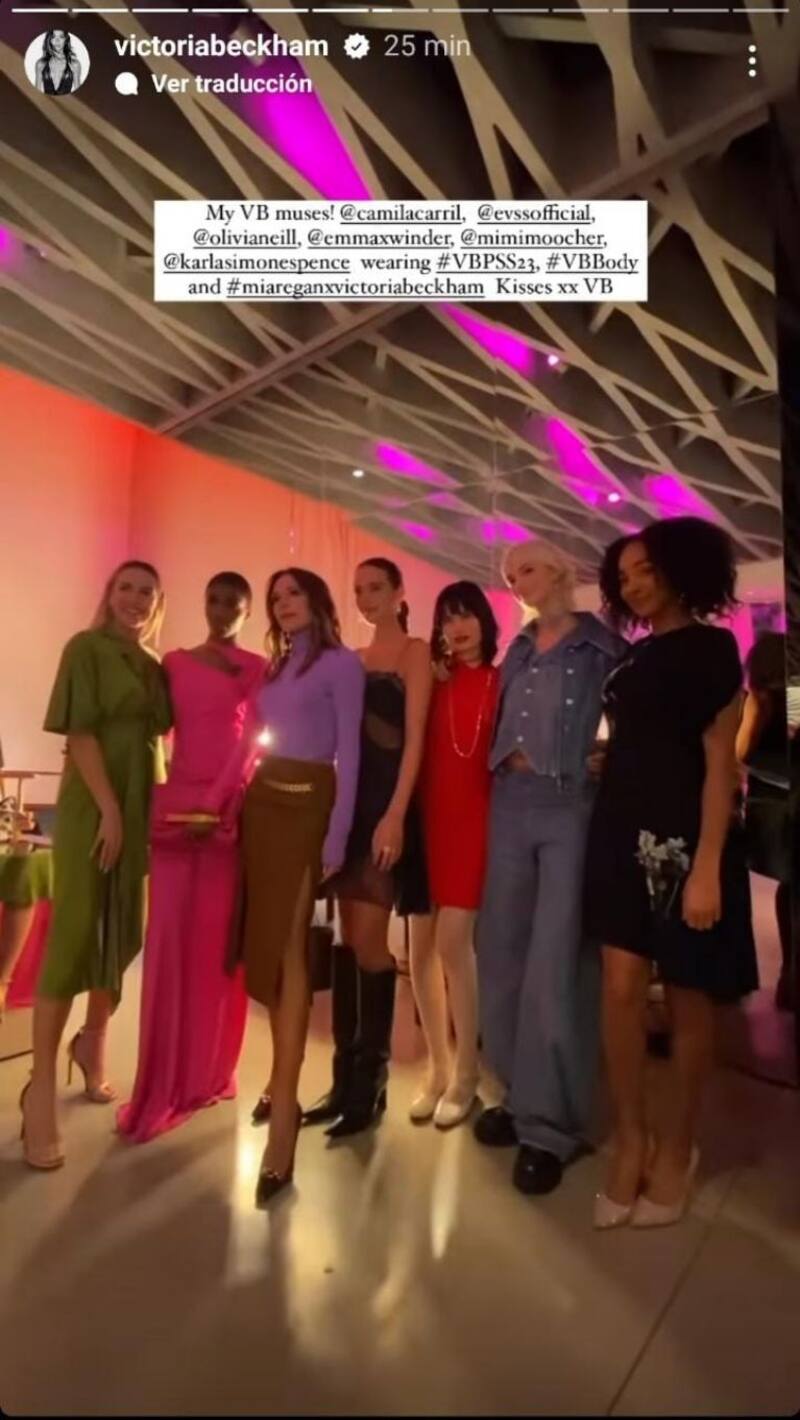 La diseñadora de moda organizó la velada para presentar su nueva colección, y todas sus musas estuvieron presentes, destacando entre ellas a su nuera favorita, Mia Regan. La novia de Romeo Beckham no solo modela las prendas de Posh, ya que la cantante también le ha permitido confeccionar algunos modelos y presentarlos como una colección especial.