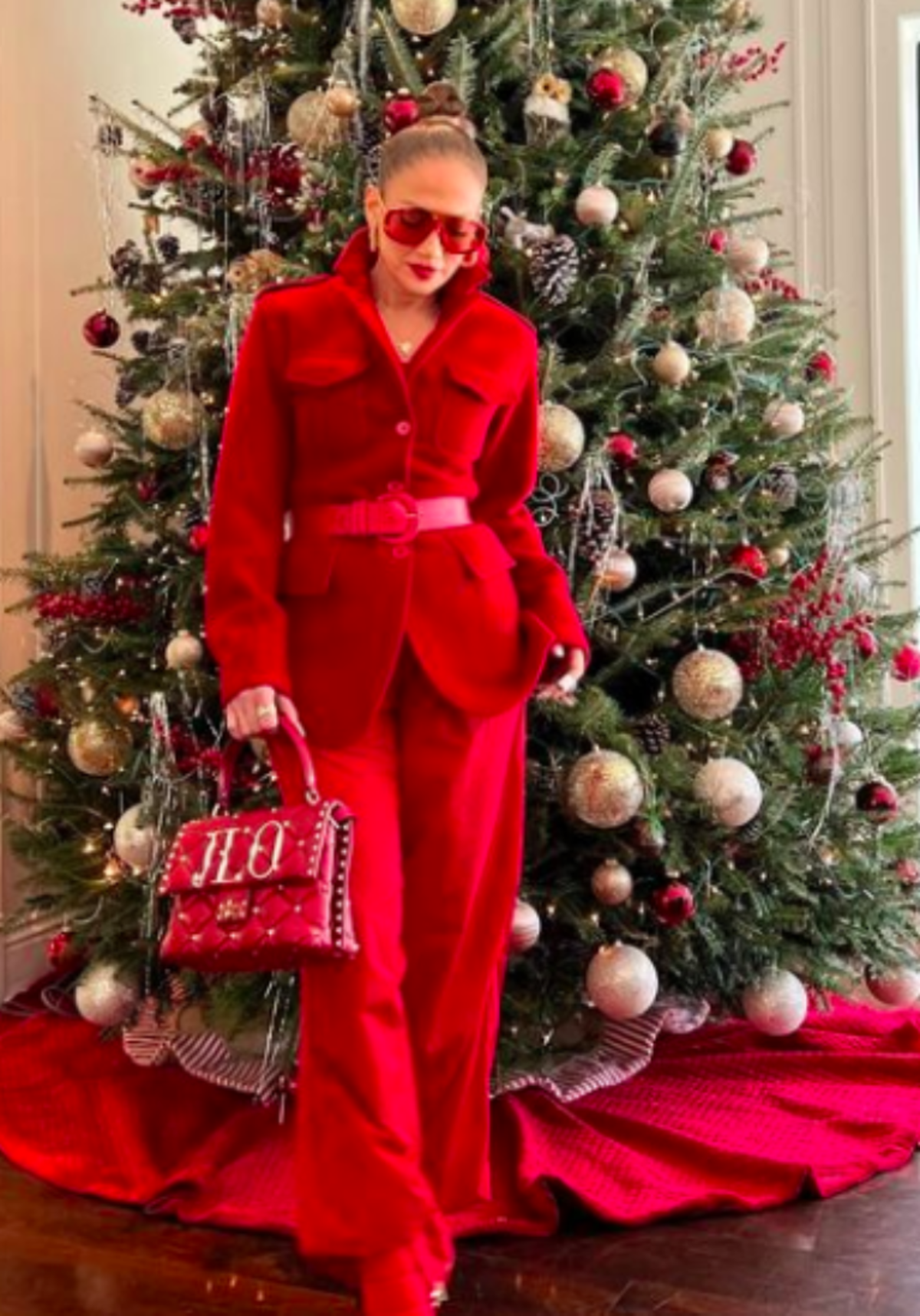 Este año la esposa de Ben Affleck, Jennifer Lopez, está inspiradísima y todo se debe a que está enamorada. La estrella de la pantalla grande decidió adornar su árbol de Navidad del color del amor: rojo pasión. Las esferas que le colocó no fueron todas rojas, las combinó con doradas de gran tamaño, mientras que el pie del árbol sí fue al tono antes mencionado.